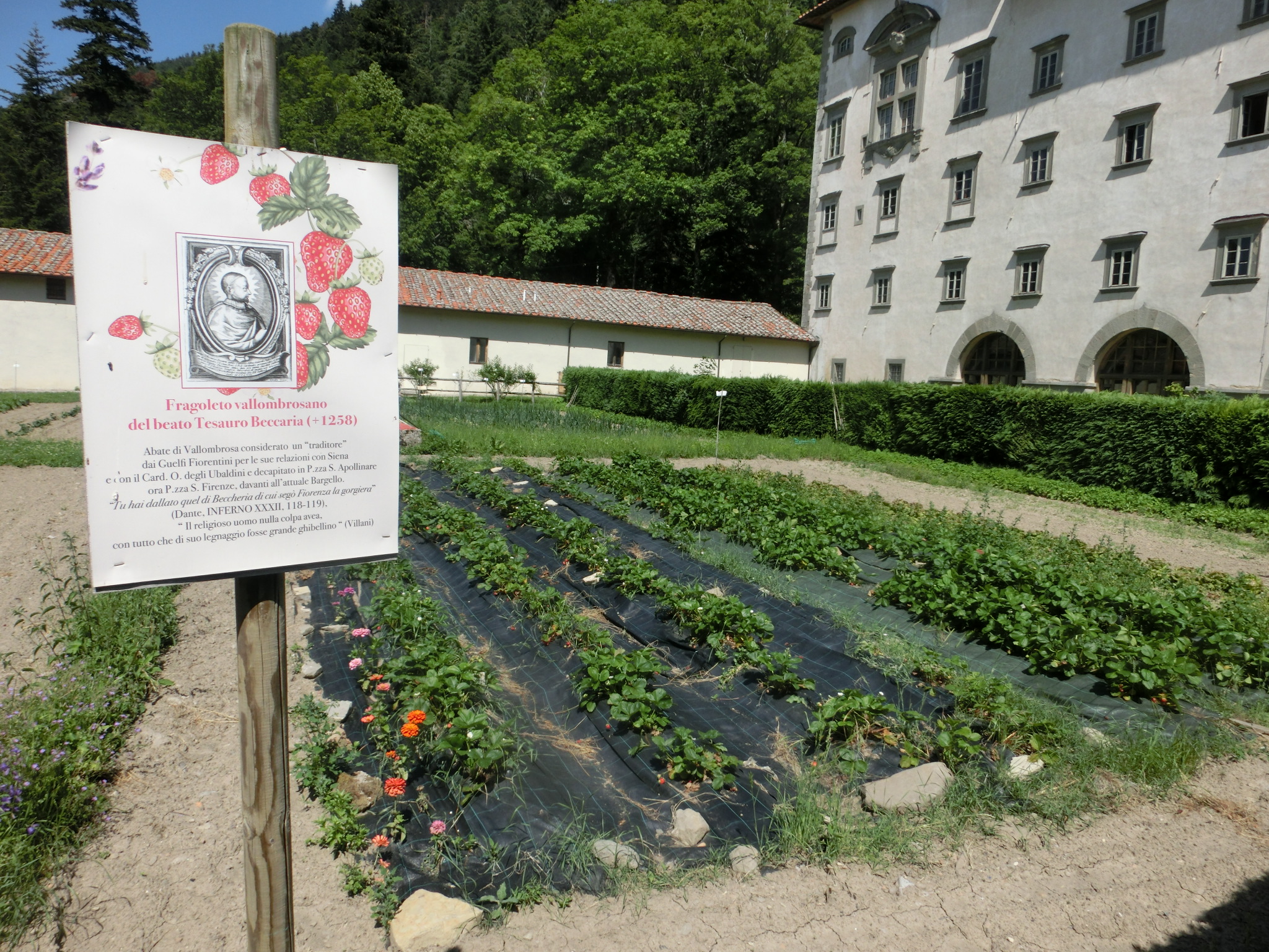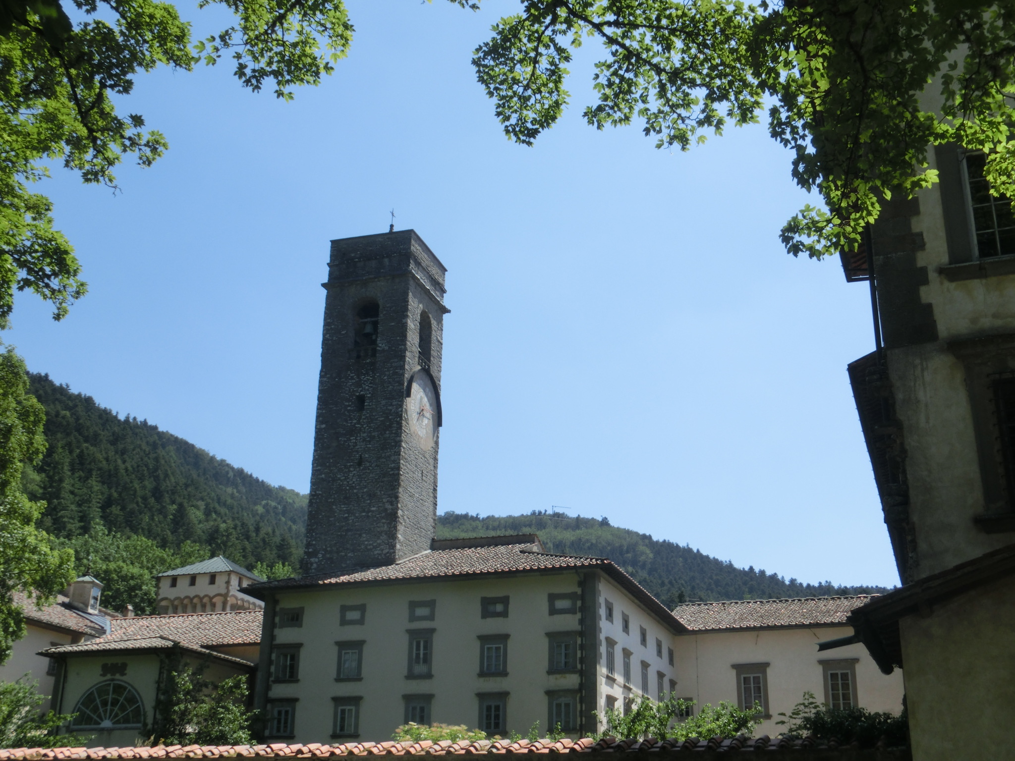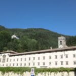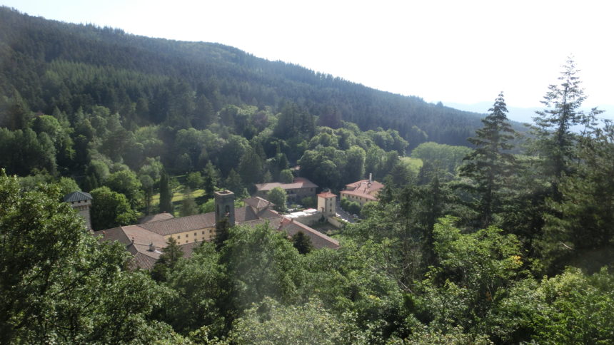 トスカーナも夏本番!田舎のおらが村でさえも、日中は家から出たくないほど暑さが醜くなってきました・・・こんな時のお出かけは、やはり涼を求めて。おらが村からもフィレンツェからも車で約1時間、フィレンツェ人たちが避暑にやってくる定番スポット、「ヴァッロンブローザ」に行ってきました。ヴァッロンブローザの中心は、11世紀に建てられたヴェネディクト派の修道院。そして現在はこのエリア一帯が、ヴァッロンブローザ国立自然保護区に指定されています。周りに木陰がある広い原っぱは、家族連れを中心とした近郊の人のオアシスで、ロックダウン解除後の暑いこの日は、ちょっと心配になるほど多くの人で賑わっていました。標高は約1000m、日向はさすがに暑いですが、森の中や木陰はとても涼しいです。