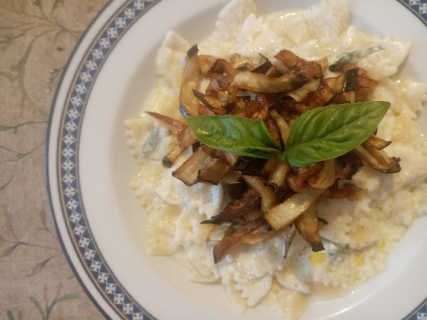 ブッラータは日本でも人気のプーリア州のチーズ。見た目はモッツァレッラチーズに似たフレッシュチーズですが、外側はやや固めで、中は崩れるほど柔らかく、パンに塗ったり、そのまま食べたりするのが多いです。このレシピでは、このブッラータを崩してソースに。ブッラータだけでは淡泊なソースになるのですが、バジルをたっぷり、そしてトッピングとなる揚げナスと一緒に食べることで食感・味と共に決まる!という感じです。イタリアの普通の食卓では、実はあまり凝ったパスタはやらないので、こういう一品が定番メニューに入るとホント嬉しい💛・・・我が家の問題は、子供たちが食べないのでもう1つ違うパスタを作らなければいけないことですが・・・ま、ブッラータ1つで2人分ちょうどなので、良しとしましょう!