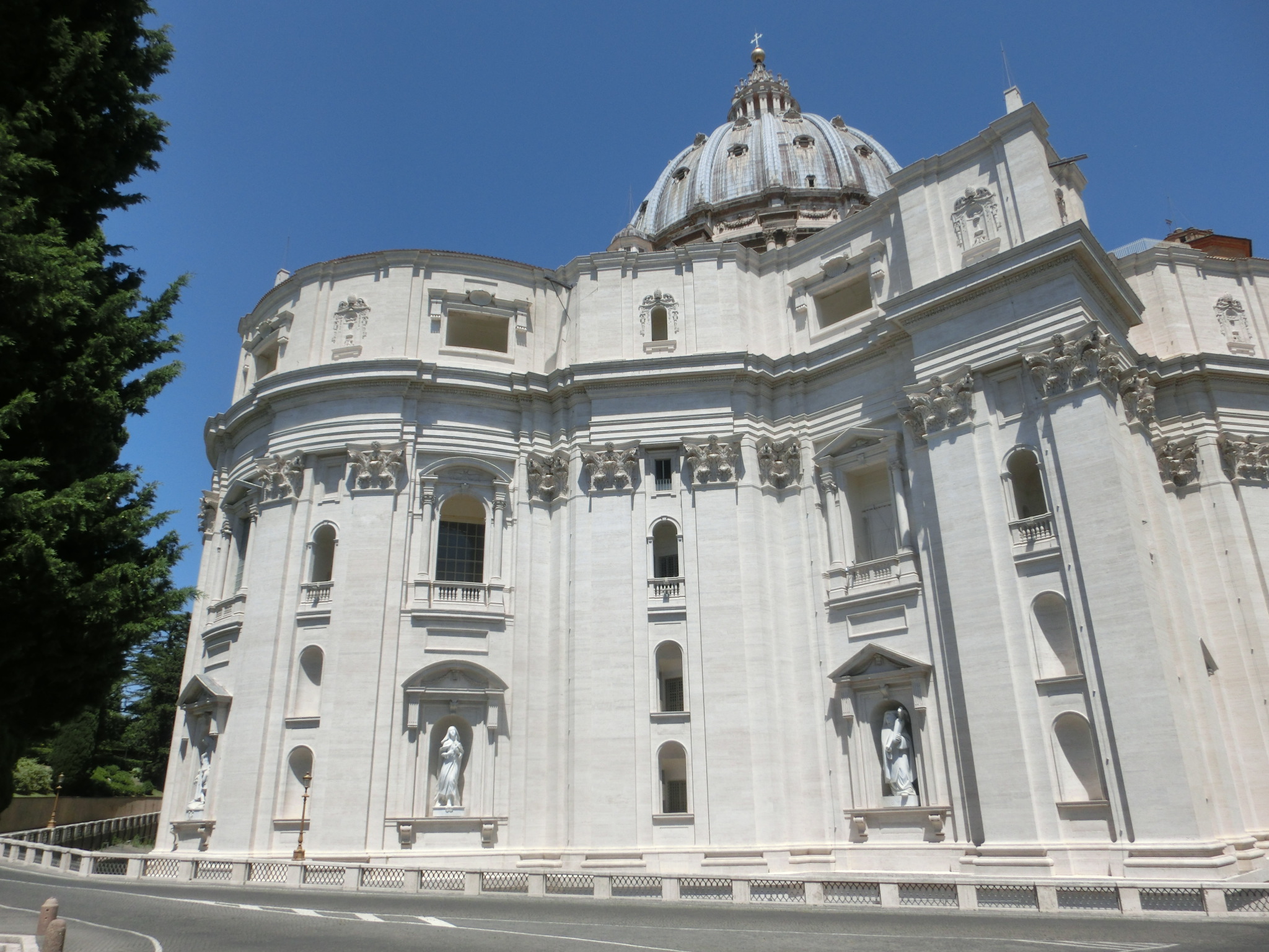 集合場所は、寺院を正面に見て左側、サントゥッフィーツィオ広場。このようにイタリアとヴァティカンの国境に柵がありますので、この辺りで待機していると、係員の方がやってきます。