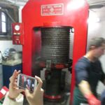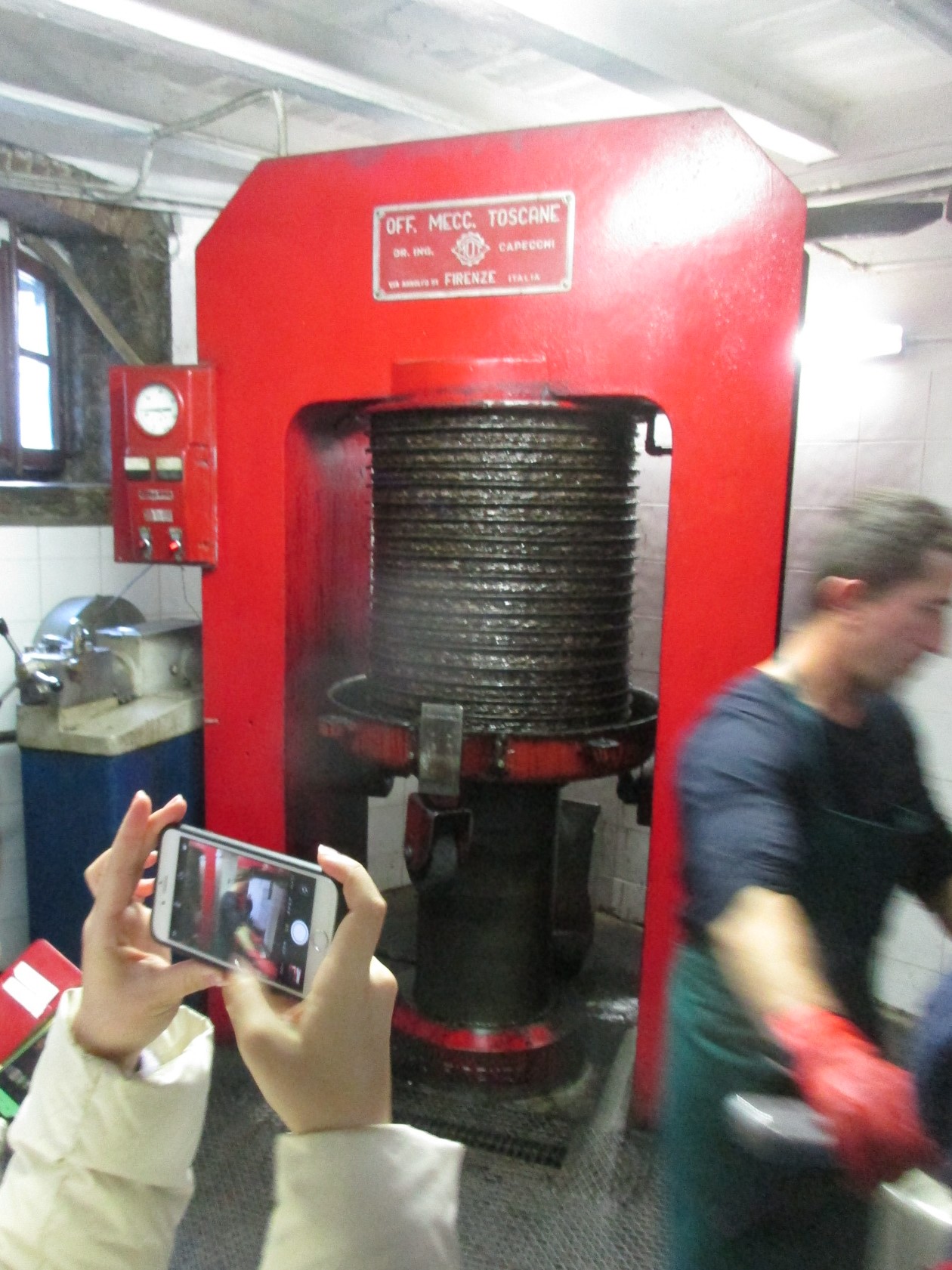 フィレンツェ北部の私の住む村では、11月になると町の中心地はゴトゴトゴトゴト、と低い振音が響きます。それは、オリーブオイルの搾油所。昔ながらの製法を用いる搾油所は近年だんだんと減っていますが、ここは何百年と続く地元の貴族家系が伝統的な製法を保持してきた搾油所なんです。近代的施設の搾油所だと、行程が全て機械の中で行われるため、オリーブを投入するところとオイルが出てくるところしか見られないような所もありますが、この搾油所では投入から洗浄、潰し、絞り、オイルとなって出てくるまで、全ての行程を見学することができます。