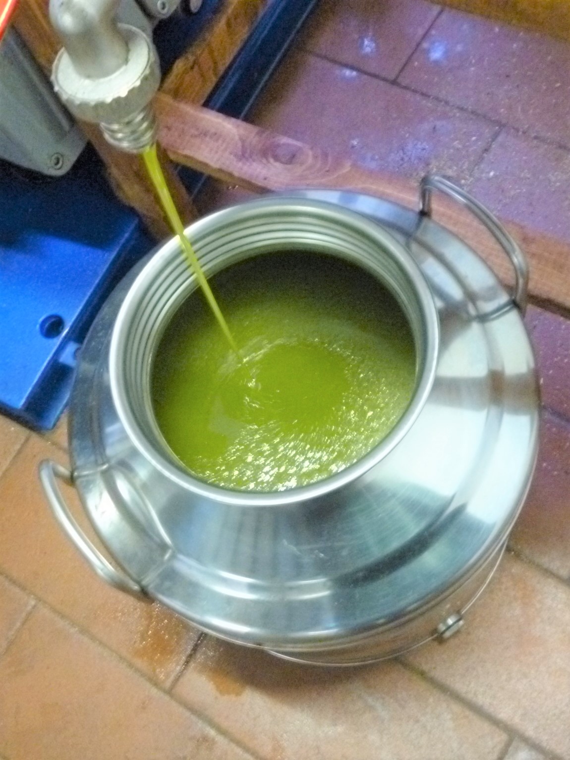 エキストラ・ヴァ―ジン・オリーブオイルになるのは実の約16%(オリーブの出来などによって上下します)、つまり実100キロでオイル16キロができる換算。そう考えると、とっても貴重な「オリーブのジュース」。この搾油所でもオリーブをオーガニック農法で生産しており、見学の後はテイスティングと購入もできます!この時期だけしかできない、搾油所の見学、そして新オイルを味わいに、ぜひお越し下さいね。