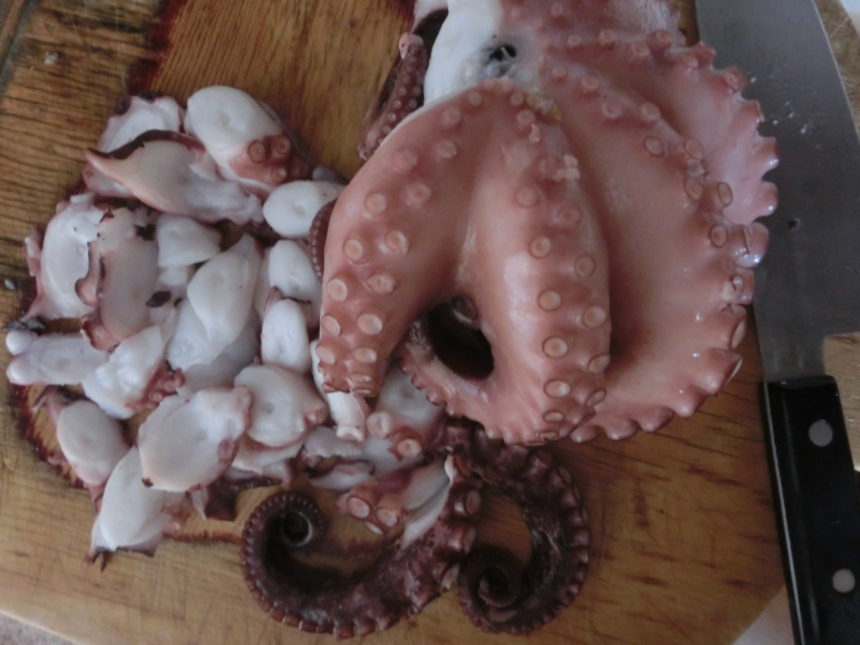 これはイタリアでは、タコ料理の定番!最初は「・・・い、いも?」とびっくりしましたが、これがまた会うのです。調理は簡単で、茹でたタコとじゃがいもを白ワイン少々、塩とオリーブオイル、そして微塵切りのイタリアンパセリを和えるだけです。
