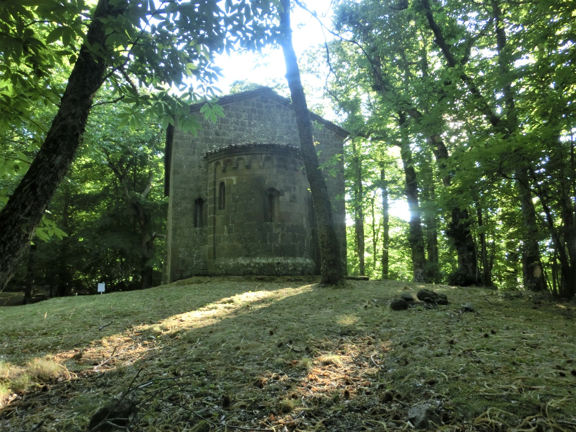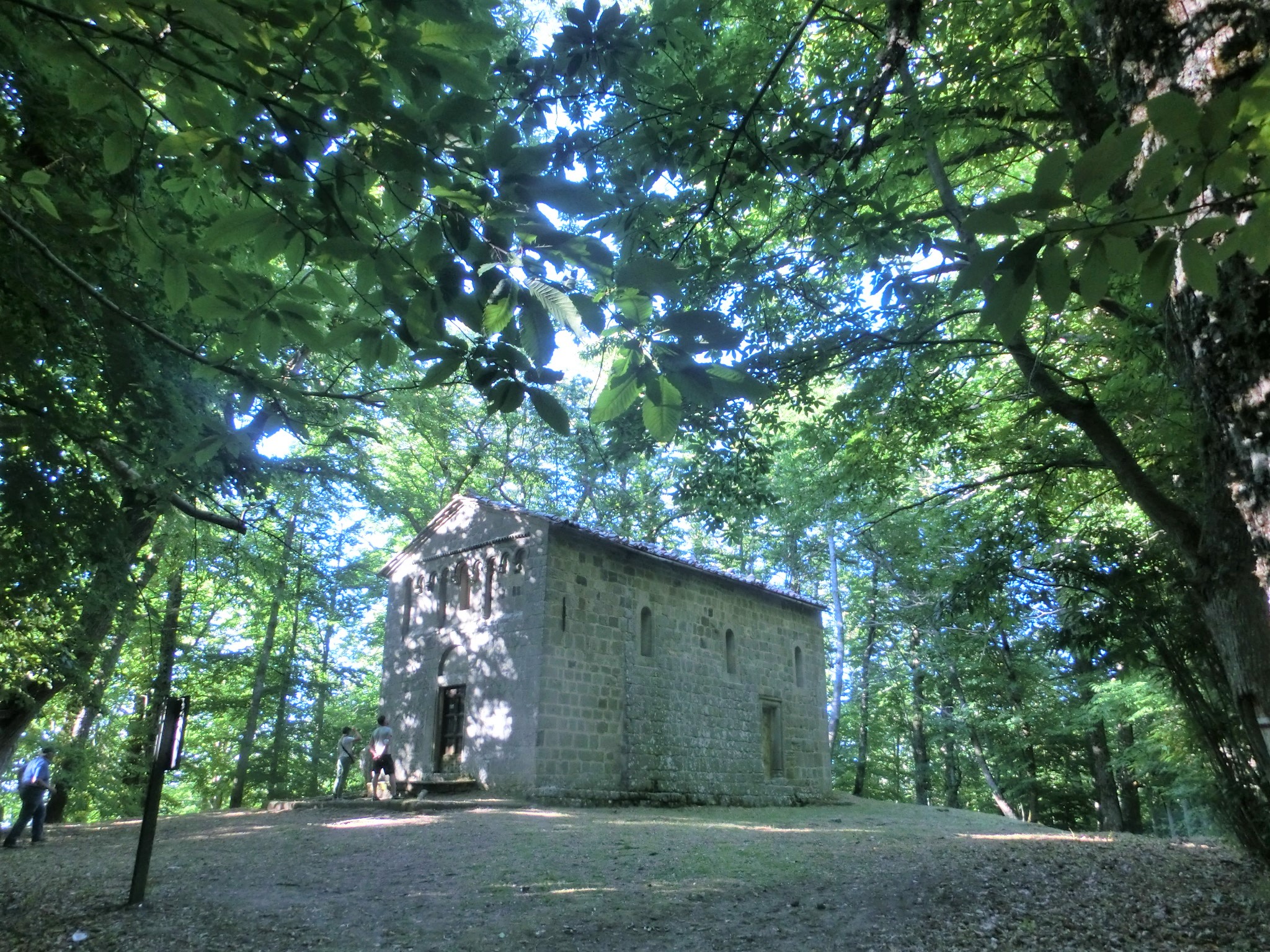 そして源泉所の他にも、もう1つの見どころが・・・それは、森の中にたたずむロマネスク様式の教会・エルミッチョーロ。