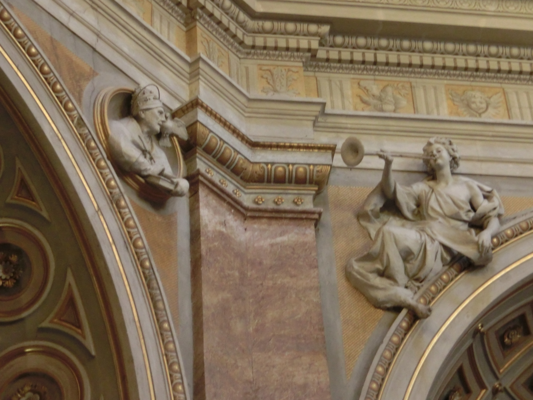8角形の内部は、各辺に祭壇と礼拝堂が置かれた華やかなもの。クーポラ上から入る光によって美しく浮かび上がります。後になって知ったのですが、教会裏側から地下礼拝堂にも行けるようなので、気になる方はそちらも訪問してみて下さいね。