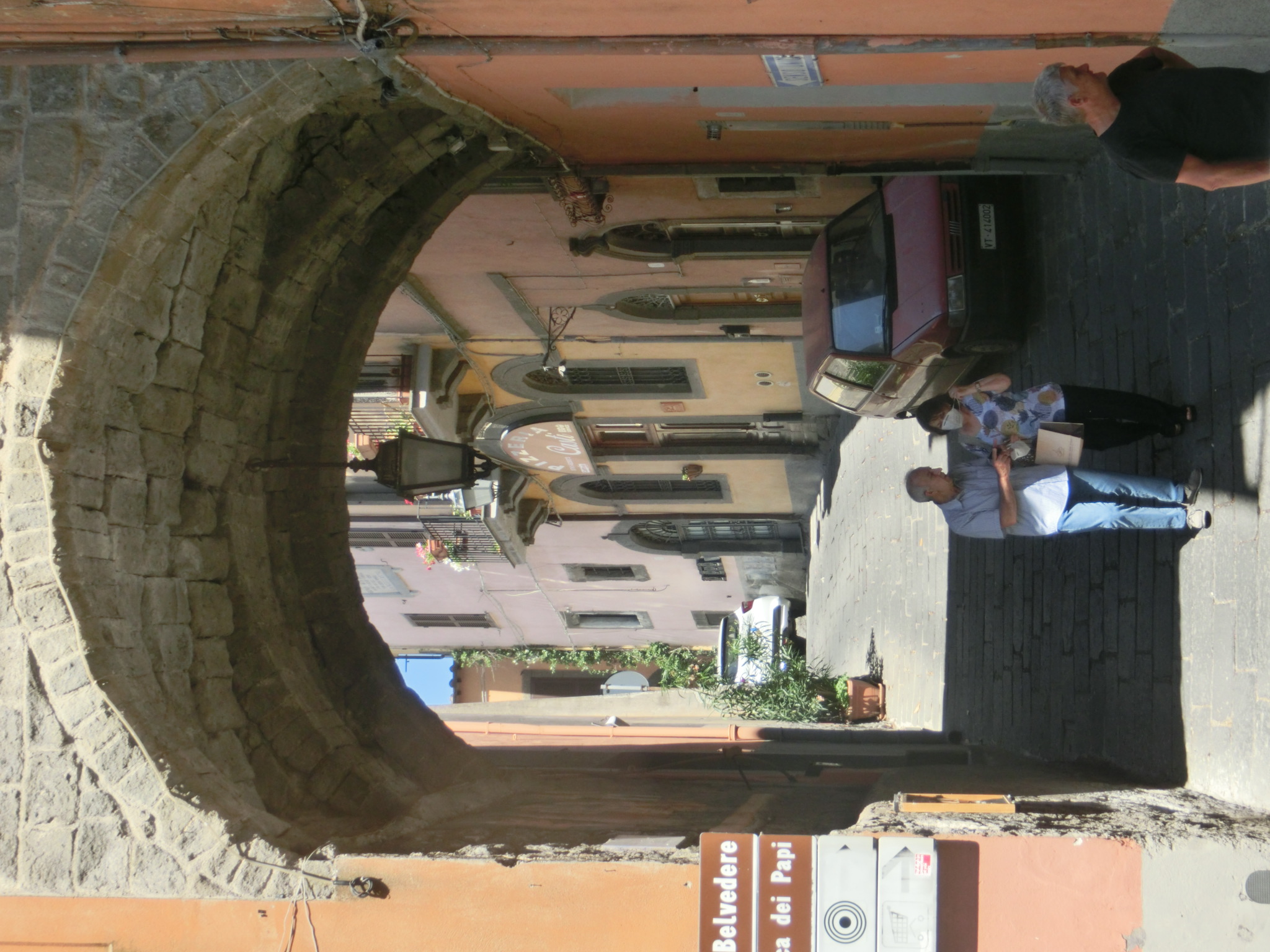 サンタンドレア・インカンポ教会を向かって左側のアーチを抜けると、村の中心となる広場、そしてその先には商店などが集まるメインストリート・カヴール通りがあります。一方、サンタンドレア・インカンポ教会を右側に見てまっすぐのアーチを超えると、カスティ通り、そこからピエーヴェ通りへ。私たちはこの先、法王たちの要塞下に駐車していたので、情緒あふれる落ち着いたこの通りを歩き、モンテフィアスコーネ観光を終えました。