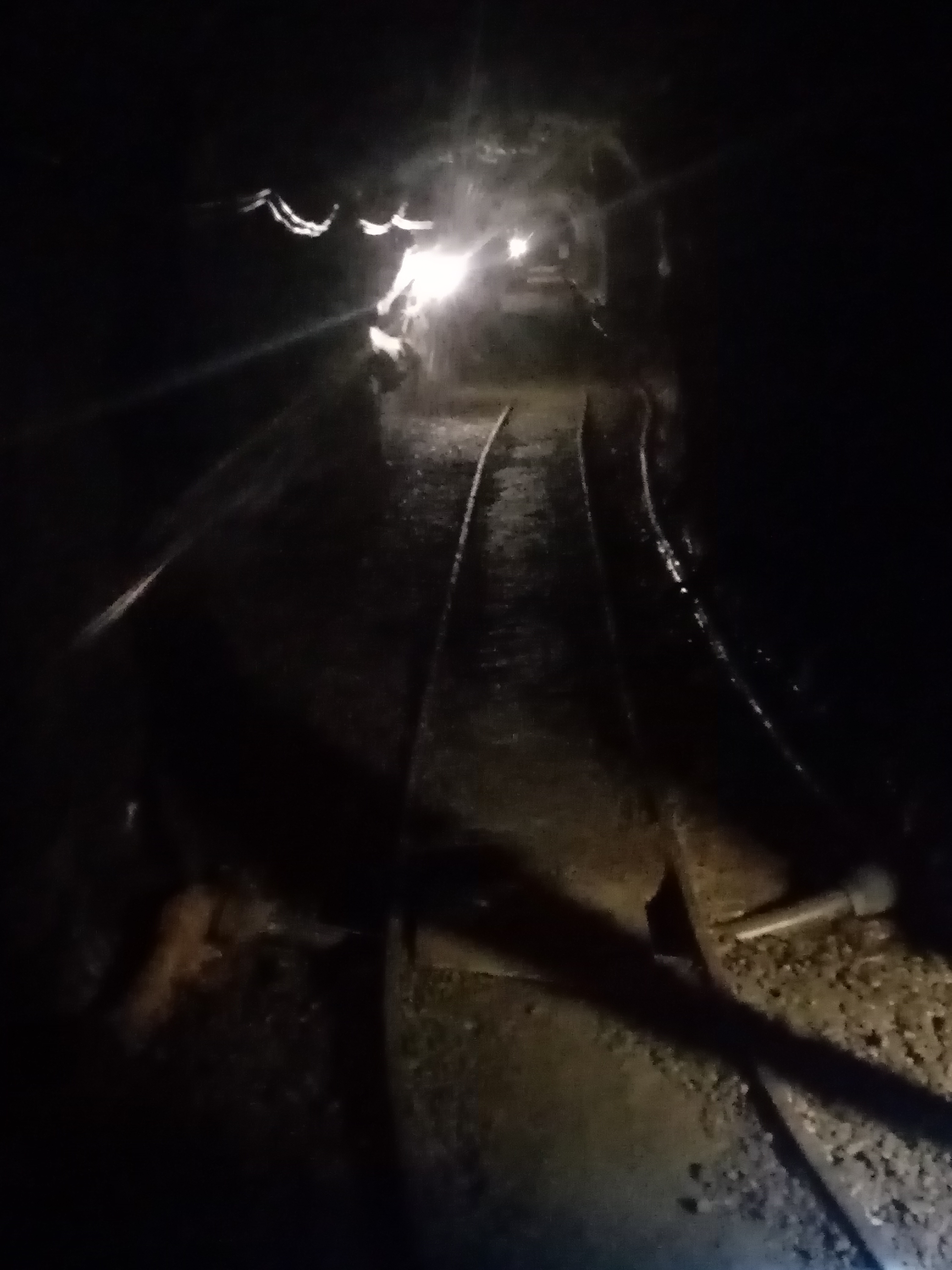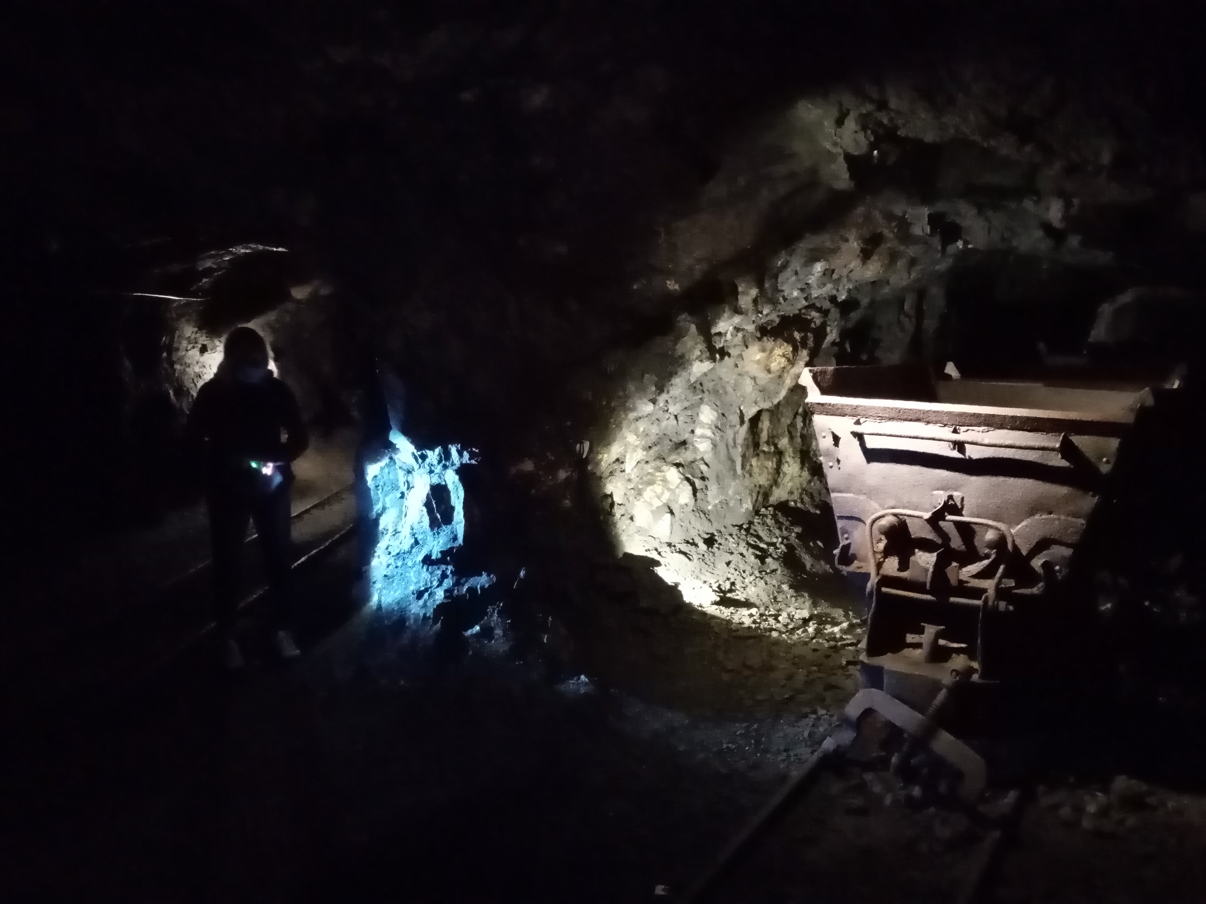 そんなガイドさんが左にぼんやり映っていますが(笑)。私たちが歩いたのは3層にもなっているトンネルの一番高い部分で海抜6メートル。その下は海底24メートル、54メートルと続きます。そしてその3つを突き抜ける大きな縦のトンネルがあり、大きな塊が粉砕されてから約4トンの鉱物がエレベーターで運ばれていく仕組み。そこから鉄分が多い部分とそうでない部分に仕分けられ、ピオンビーノ、ターラント、バニョーリ、ジェンノヴァの鋳鉄所に船で運ばれて行ったそうです。