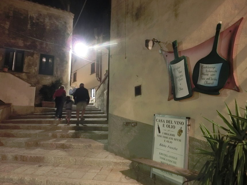 エルバ島の7つの市の中で、町歩きで人気があるのがカポリーヴェリ。海の町でなく、標高167mの小高い丘にある内陸の町です。マルチャーナやリオなどと共に、エルバ島の中で古い町の1つ~海賊などからの攻撃の危険があるため、昔は内陸の町しかなかったそうです。