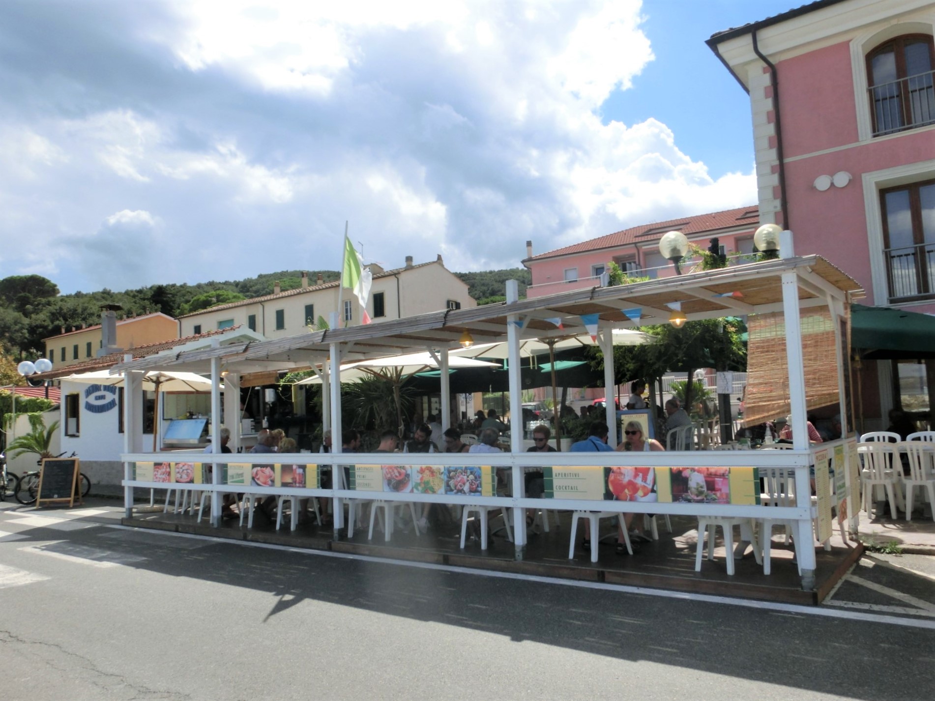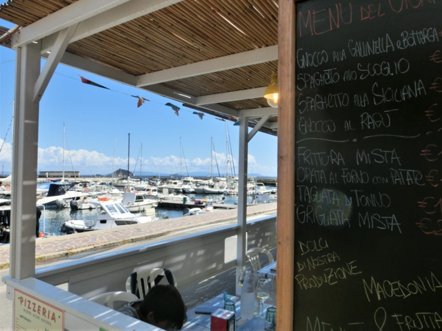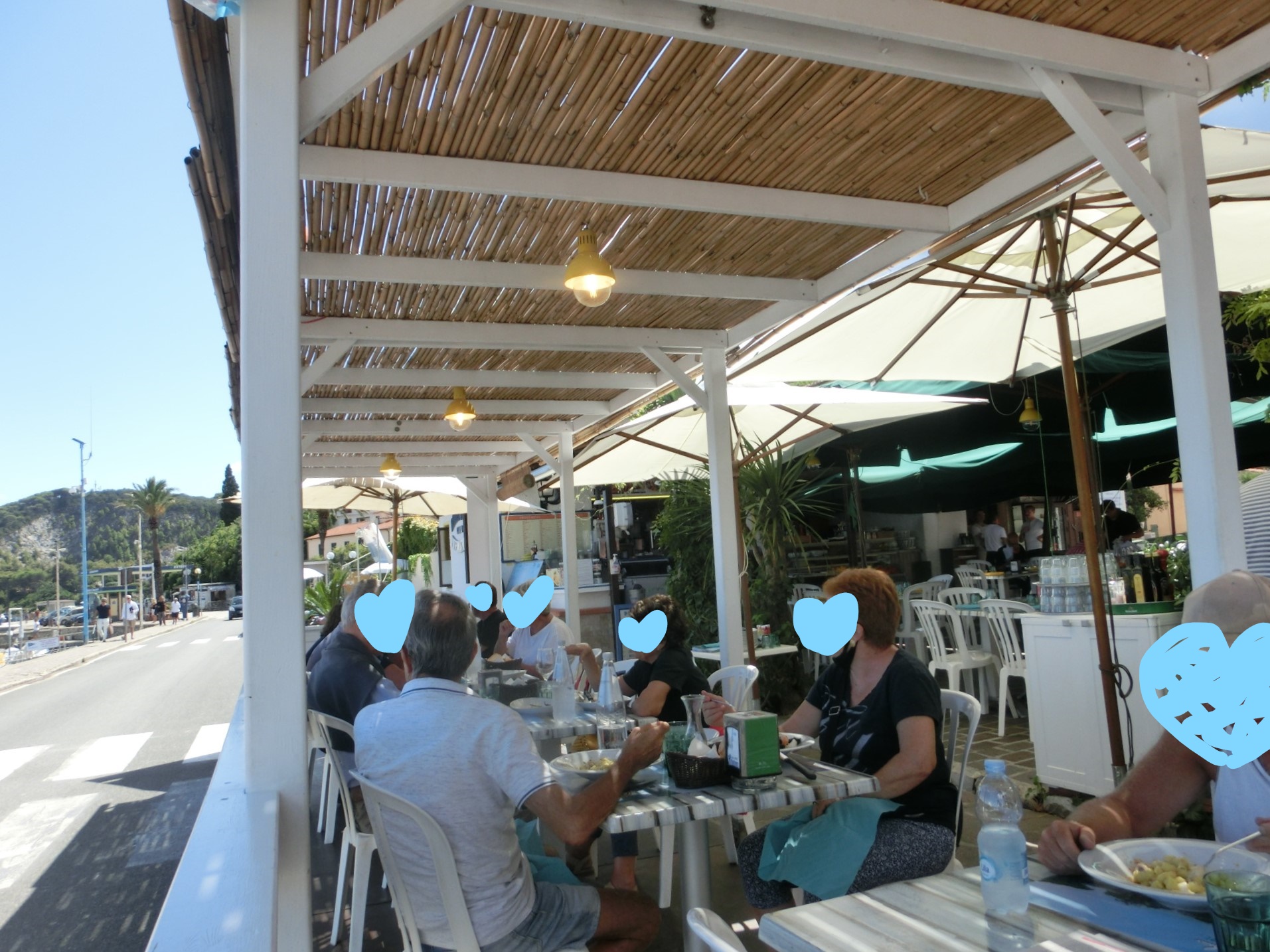 極めて外食の少なかった今年のバカンスですが、丸1日外出となった日に行ったレストランです。というか、毎年エルバ島に行くママ友押しだったので、ここに行くことを含めて行程を考えました(笑)。本当は食事でなくおやつ目的だったのですが、レストランを探して歩いていて、食事もここが一番よさげで、かつ大満足!ってことで、1日に2回も行ってしまいました。場所もとっても便利で、カーヴォの港の真ん前=ピオンビーノから到着した方はすぐにでも、出発の方は乗船前に行けるという立地。港から北側は全てビーチなので、私たちもランチ後にビーチへ、ビーチ撤退後におやつに寄ることになりました。