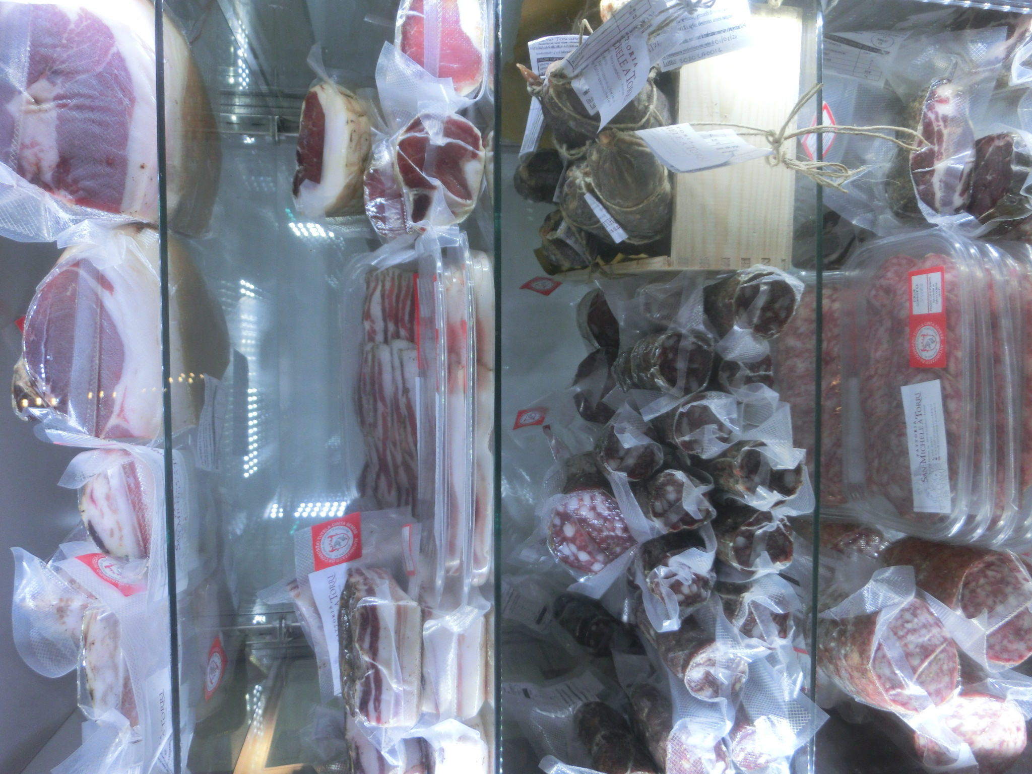 ワイン農家がワインとオリーブオイル生産するのはよくある事ですが、ここの面白い所は、畜産もやっていること!しかも、シエナ原産のトスカーナの希少な豚、チンタ・セネーゼを飼育しているのです。柔らかい脂肪分の特徴を十分に生かしたサラミ、生ハム、そしてフィレンツェの半生サラミ・フィノッキオーナが絶品!テイスティングでも登場しますが、全て購入もできます。