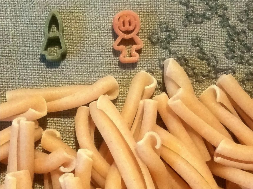 ※TOP写真は、スペルト小麦のバスタ・カザレッチェ3キロの袋に混入していた子供用?ミニカラーパスタ。