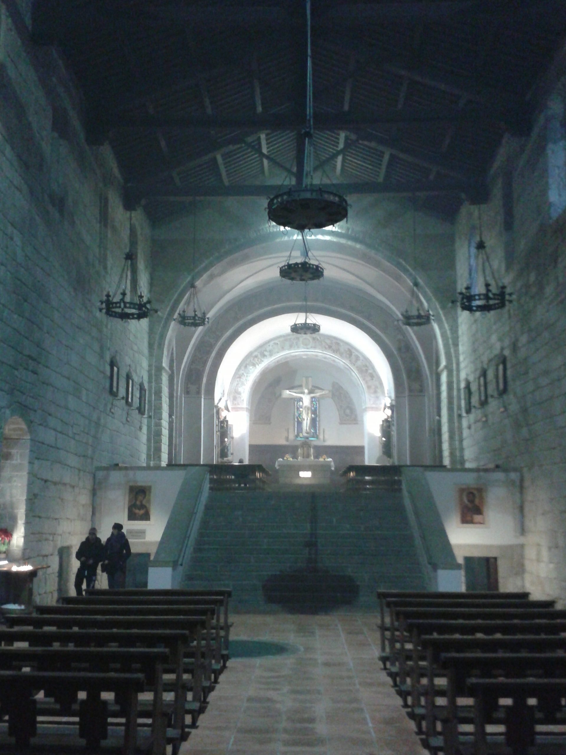 伝説によると、ロンゴバルド族のRatchisが狩りの最中にキリストを見た、もみの木のある場所に建設されたそうです。ベネディクト会のこの修道院の建設は8世紀 、再建されて奉納式が行われたのは1035年、何回か改修されたとはいえ、 1000年以上の歴史ある教会 なんですね。写真をよく見ると、2本ある塔のうち右側が未完成 で残っています。10~12世紀、 フランチジェーナ街道を通ってきた巡礼者が多く訪れて最盛期 を迎えましたが、1782年には、修道院でなく教区教会になりました。