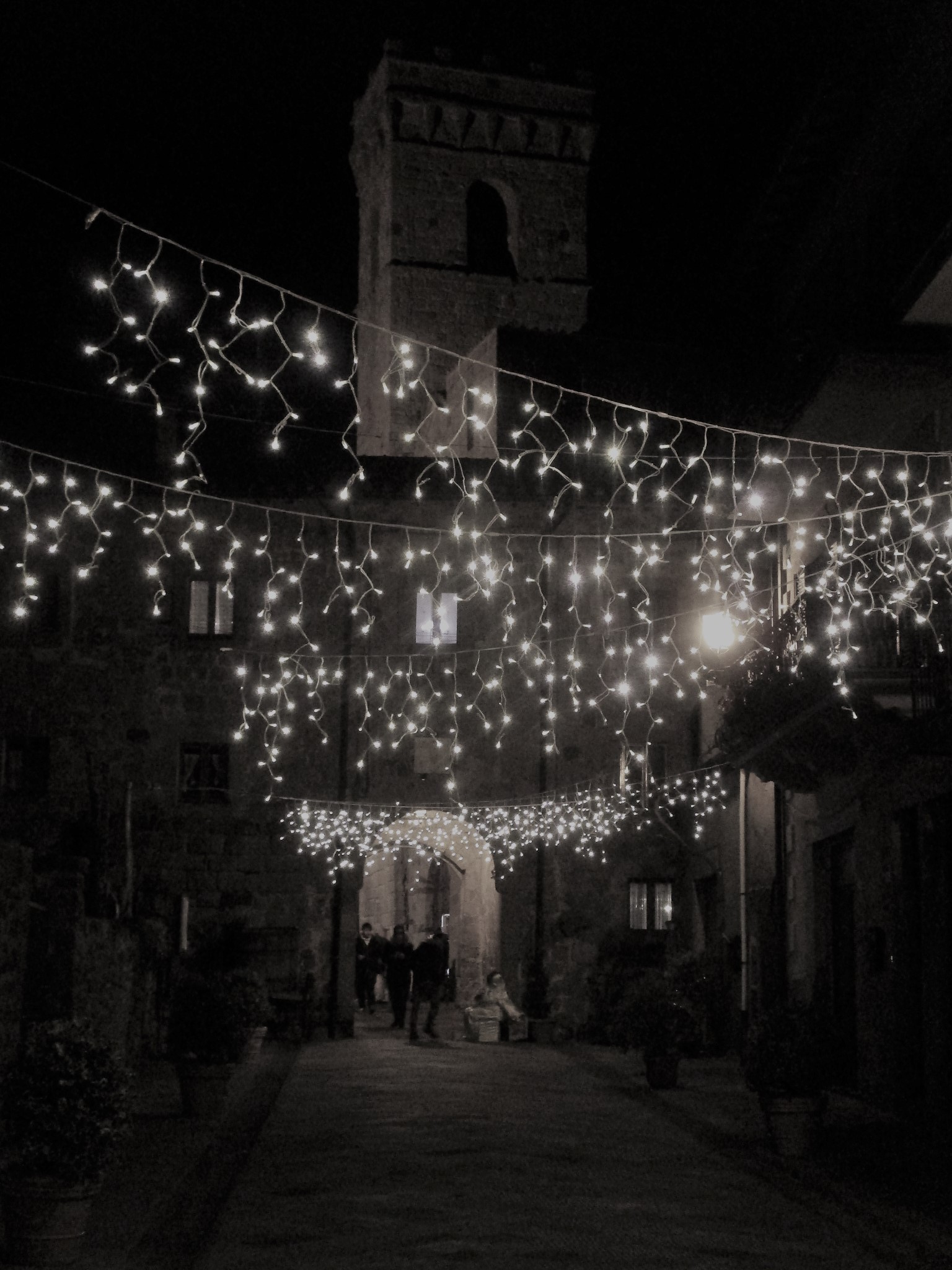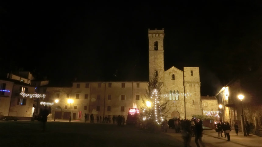 アッバディア・サン・サルヴァトーレの町の名前となっているのが、このサン・サルヴァトーレ修道院 。旧市街を出てすぐの大きな広場の一角にあります。この写真を撮影したのはクリスマスイブなので、 クリスマスイブのイベント・フィアッコレ が灯り、ツリーもあっていっそう美しいです。