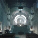 そして、ここの教会の最大の見所が、クリプタ(地下礼拝堂)。階段の両脇にある小さな入口を入ると、薄暗い中に荘厳な空間が広がっています。