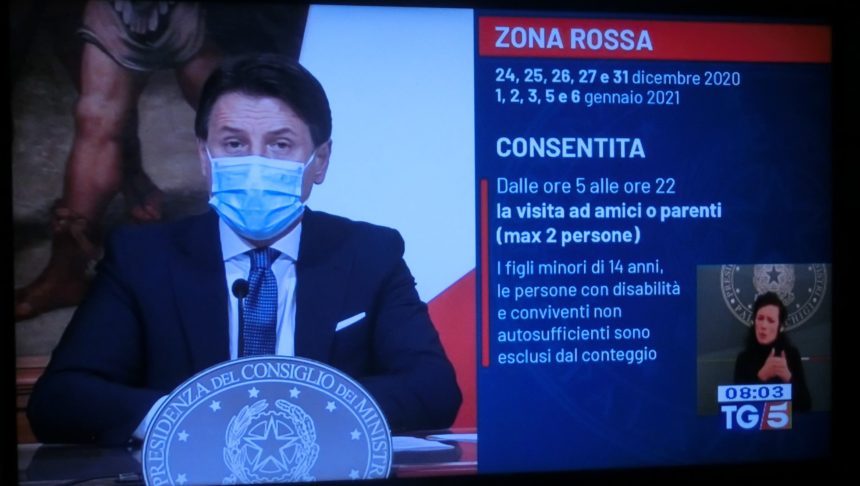 色分け規制が始まってから、感染の減少が止まってしまったイタリア。そして来週からクリスマス休暇開始・・・とあって、数日前から規制強化しないと大変なことになる!と新規制のニュースが毎日流れていました。そして19日の晩にコンテ首相の記者会見。それまで報道されていた予測よりもかなり厳しい内容になりました。
