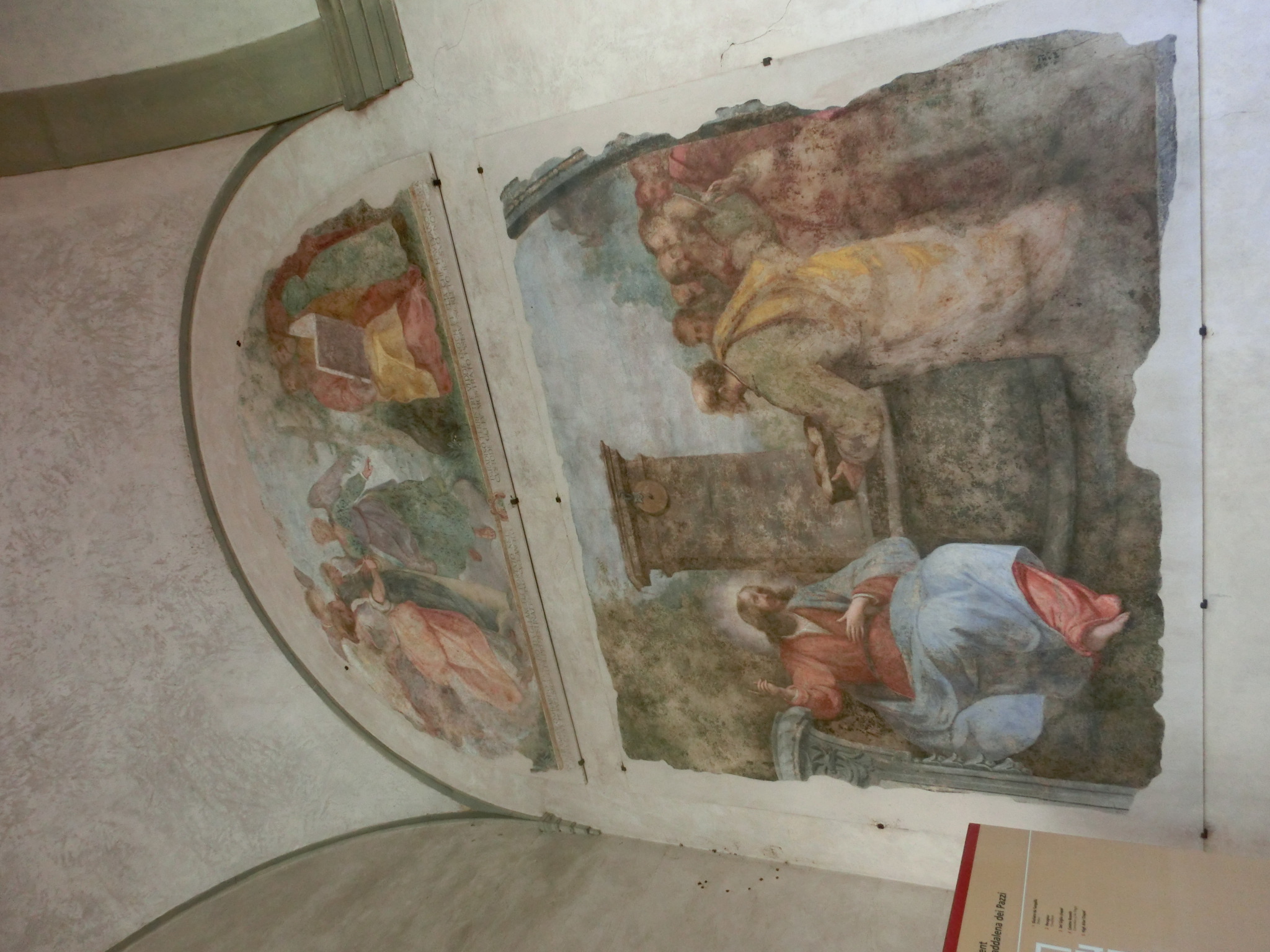サンティ・ミケーレ・エ・ガエターノ教会、サン・フレディアーノ教会に続く第3段の、ガイドにないフィレンツェの教会シリーズ。今回はなんだか長ーい名前の、旧市街でも少しはずれにある、サンタ・マリア・マッダレーナ・デ・パッツィ教会です。しかも、教会自体は普通の建物のような入口を抜けた奥にあるので、よほど気を付けないと教会だとは分かりません。私はたまたまこの道を通った時に、説明の立て看板を見て入って、この教会を知ることができました。