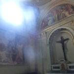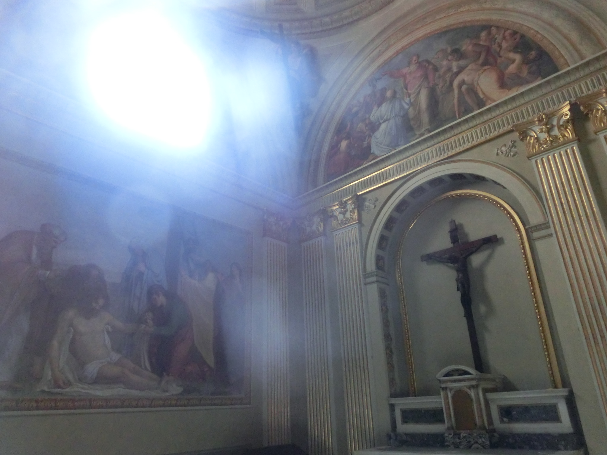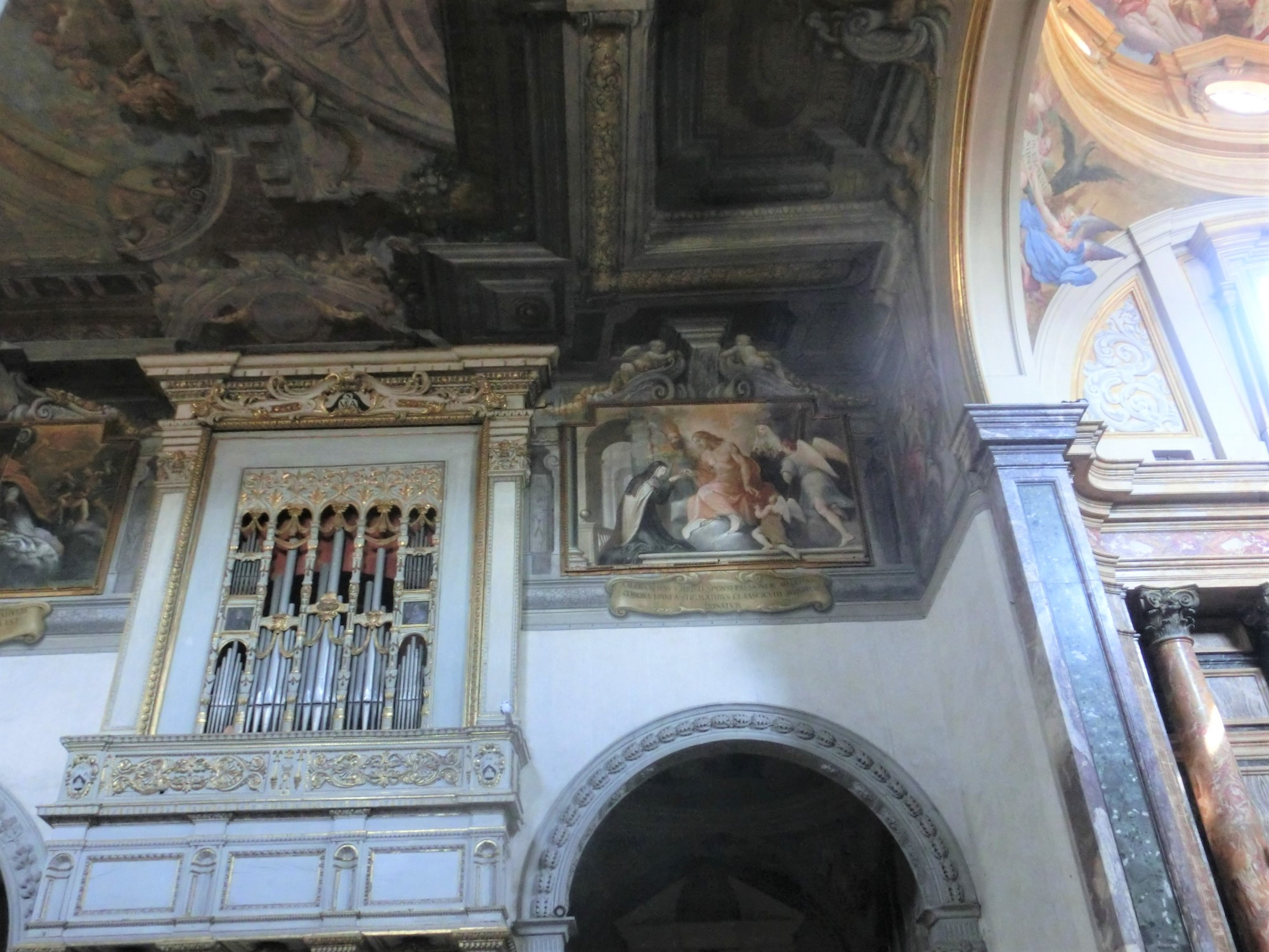 しかし、この教会の本当の宝は、教会奥の司教座聖堂参事会室にあります。1493~96年に描かれた、ペルジーノの「十字架刑」。教会の中からは行くことができませんが、通常ならコロンナ通りの別の入口から見学することが可能だそうです。面白いのは、現在この部分は高等学校の内部となり、学校が開いている期間の火・木曜日 14.30 – 17.30に見学が可能だそうです。コロナの規制がなくなったら、ぜひ見に行ってみたいですね。