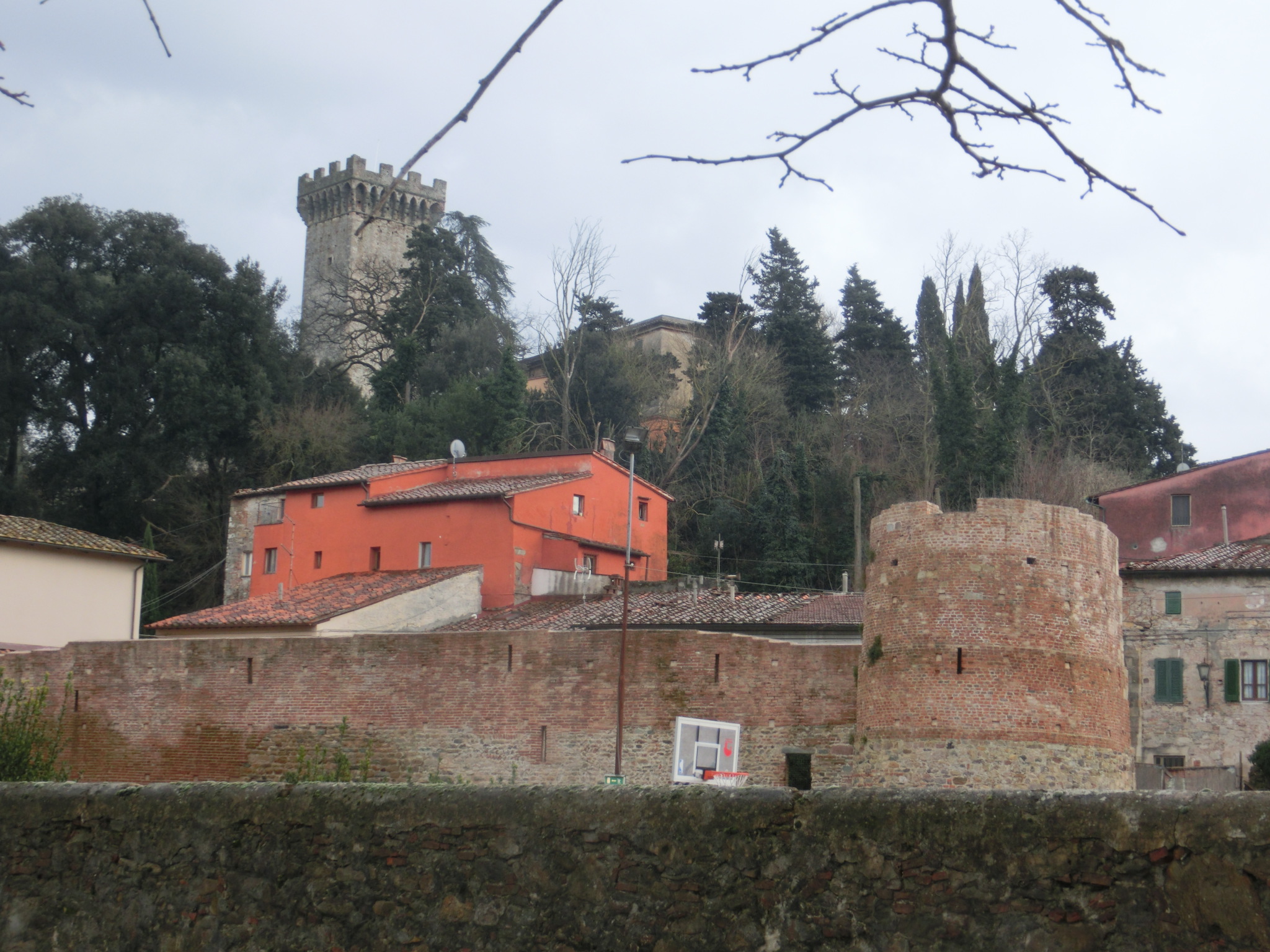 そして今度は「城通り」を進み、路地を上ると、最大の見どころであるブルネッレスキの要塞と、その奥にプレトリオ宮に出ます。要塞はフィレンツェ共和国から名を受けたブルネッレスキの設計で、1434年より建設を開始。そのころからヴィコピサーノはこのエリアの中心的な町として栄えますが、1500年代半ばより、トスカーナ大公国が安定した政権となってからは軍事的な重要性を失い、少しづつ今のような小さな村へと姿を変えていくのでした。要塞・プレトリオ宮・あとで紹介する時計の塔などは、今回は外から恨めしく見上げただけで終わりましたが、週末には予約制のガイドツアーがあります。ツアーに参加したい方は、こちらからどうぞ。