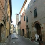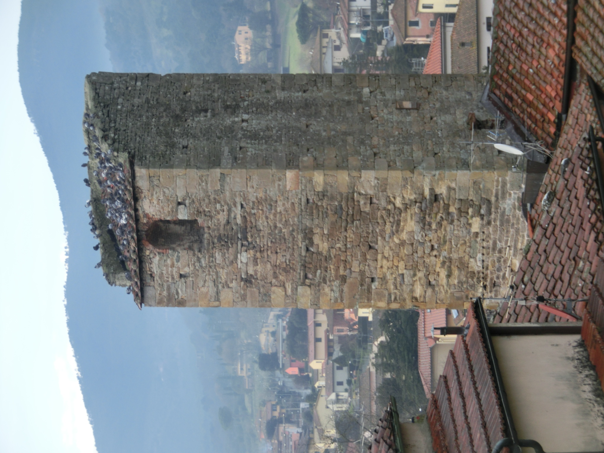 ヴィコピサーノで一番古い「古い郵便局」という12世紀の建物が。ご覧のように4つの建物から成り、この時代の特徴である当分半円のアーチに、この地方で採れるヴェッルーカノ石が使用されています。植木なども置かれてあったので、おそらく今も民家として使われているようですが、この広場に立つと本当に中世にタイムスリップした錯覚に陥ってしまいます。そこから村の中心に進むと、今度はヴィコピサーノで一番低い14mのピエトライア塔、修復中のマラニーマ塔を経て・・・