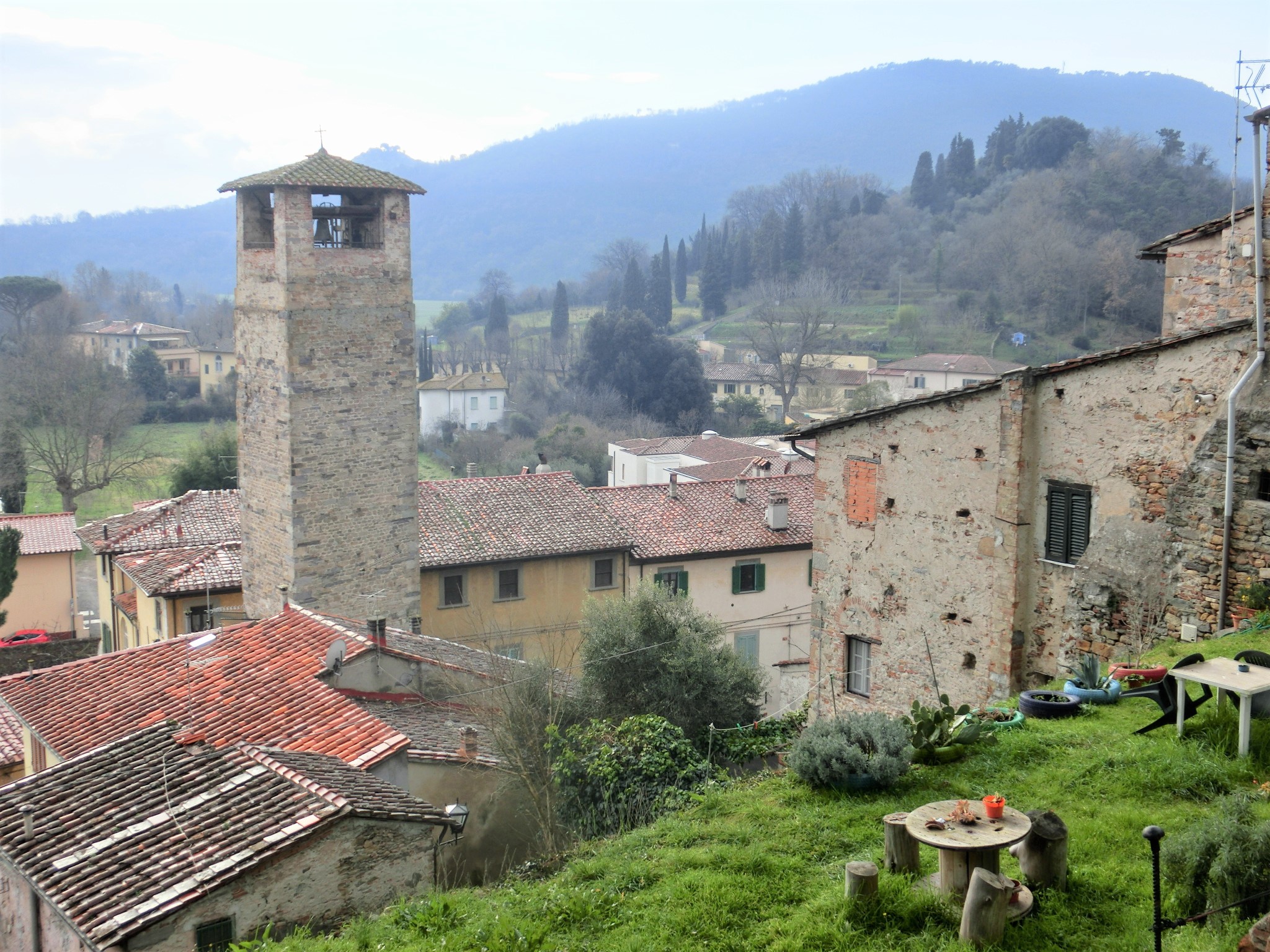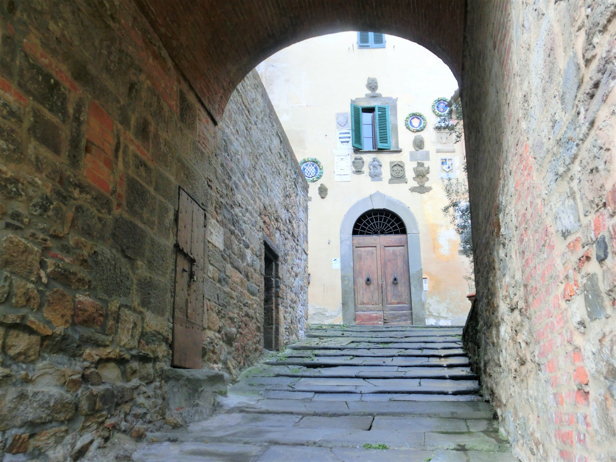 教会前から続く城壁沿いに前に進むと、こんな塔が。「4つの門の塔」の名前通り、4方向にアーチになっています。ここから村へ入れば要塞に近そうなので、そのまま坂を上ってゆくことにしました。今はグーグルマップがあって便利なのですが、アップダウンや本当に小さな路地は分かりにくく、予想外に疲れてしまうこともありますが、このヴィコピサーノもまさにそんな村。歩き回るのは疲れますが、それも吹き飛ぶような路地や民家、パノラマに癒されます。