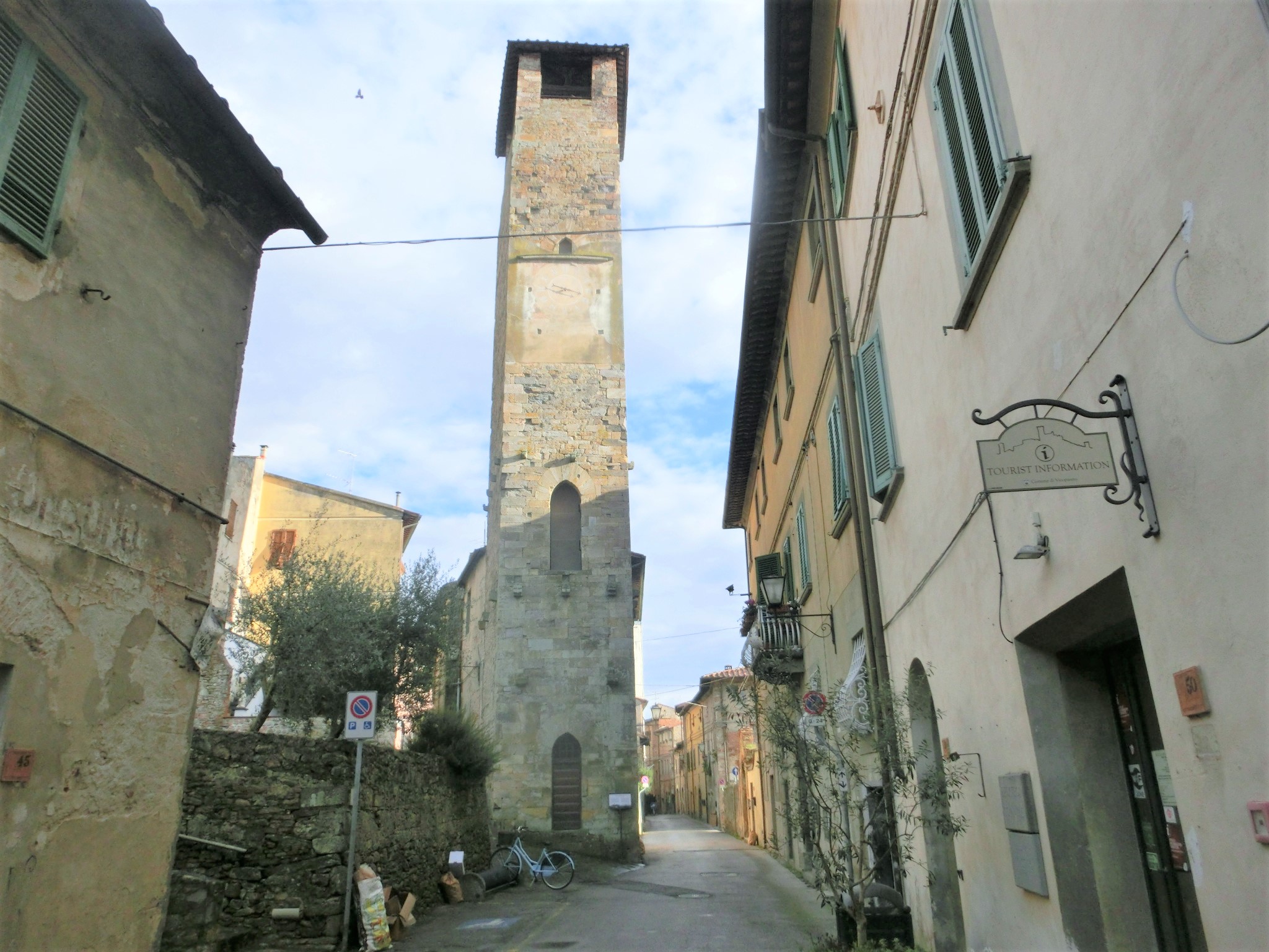 ズキューン!!と高い「時計の塔」に出ます。12~13世紀の建設で高さは20m、プレトリオ宮のすぐ下に建てられ、そこから村の道や周辺を監視する軍事目的の重要な役割を果たしていました。ピサがフィレンツェに統治され軍事的な目的が失った後は、屋根と時計が設置され、鐘楼としての役割を担うようになります。現在のこる時計の機構は18世紀のものですが、16世紀にはすでにこの時計の存在が記録されているそう。こちらも上れるのは週末だけで、ガイドなしとガイドありが選べます(詳細と予約はこちらから)。ちなみに、この塔から道を挟んだ向かいには、観光案内所があります。