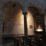 記録に登場するのはなんと934年ですが、現在残っているのは、12世紀のもの・・・それでも十分古いのに、ご覧のようにとても端正で美しい外観。ロマネスク様式の3身廊で、左右には6本の柱が並んでいます。柱は灰色砂岩ですが、左側の1本目、3本目、6本目はなんと!ローマ時代の大理石を利用しているそう。