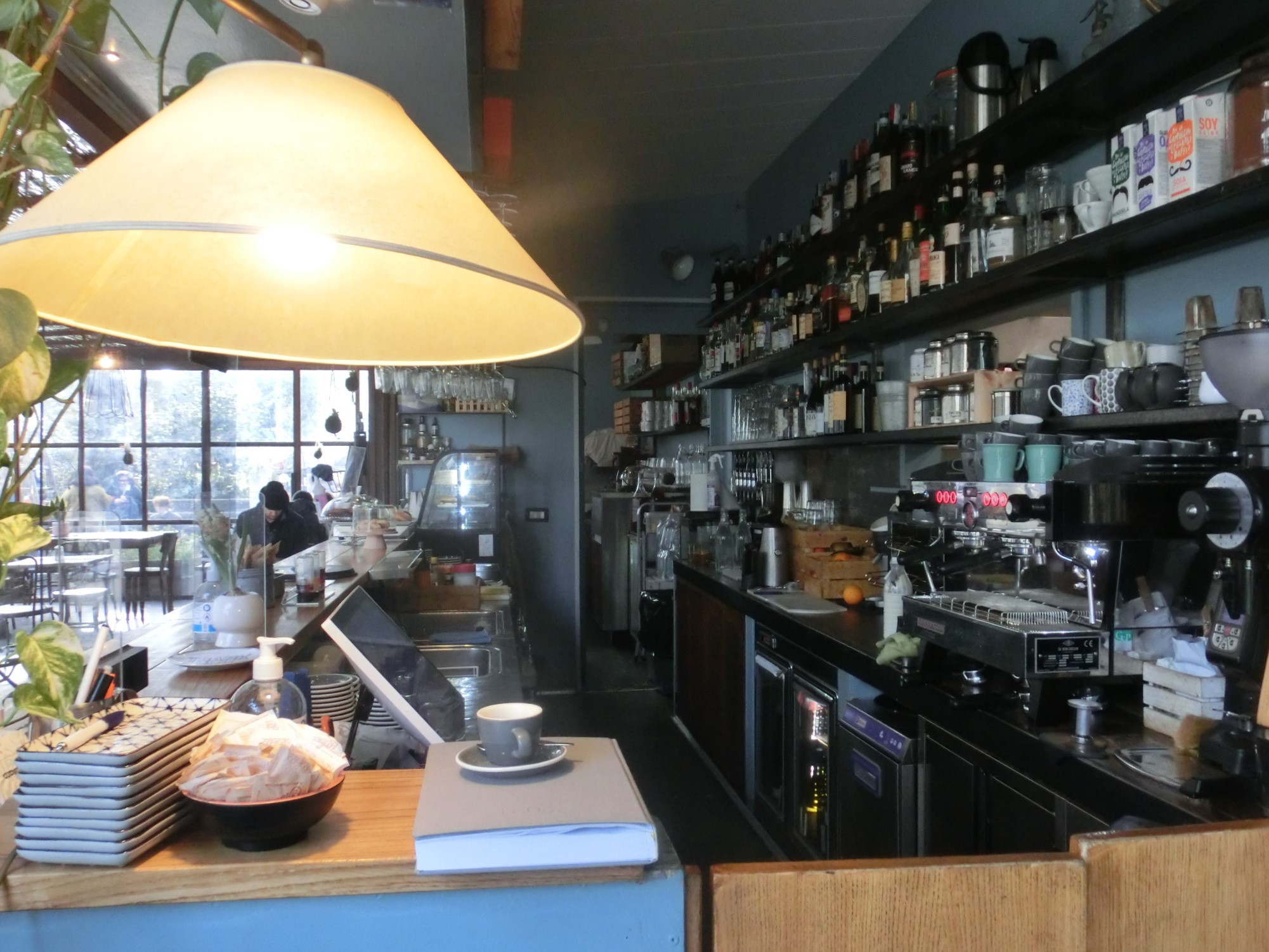 日本から来られるなら、まさに観光客はいない市民のカフェタイム・食事タイムがみられる貴重な場になるかも。この日も、ベビーカーで子連れの若い夫婦や犬連れの女性など、地元民がちょっと立ち寄ってお茶していたり、パソコンしながら食事している人も見られました。外テーブルもたくさんあり、冬でもお天気なら、外で太陽を浴びながら気持ちよく過ごせますね。