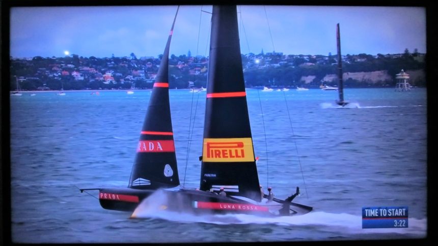 オリンピックやサッカーのワールドカップのように、4年に1回の開催。そして今年は、前回優勝者に挑戦する艇を決める事前レースが、ルイヴィトンからプラダにスポンサーが代わり、公式タイムキーパーもパネライになり、プラダ・カップの名称に。もちろん出場する艇は「プラダ・ピレッリ・ルーナロッサ」!このプラダカップは1月15日~2月21日にニュージーランドのオークランド湾で開催され、イタリア艇、そしてイギリス艇イネオス、アメリカ艇アメリカンマジックの3チームで戦われました。前者2チームが決勝に進出し、そして最終的に先に7勝したルーナロッサが勝利し、アメリカズカップの出場権を手に入れました!