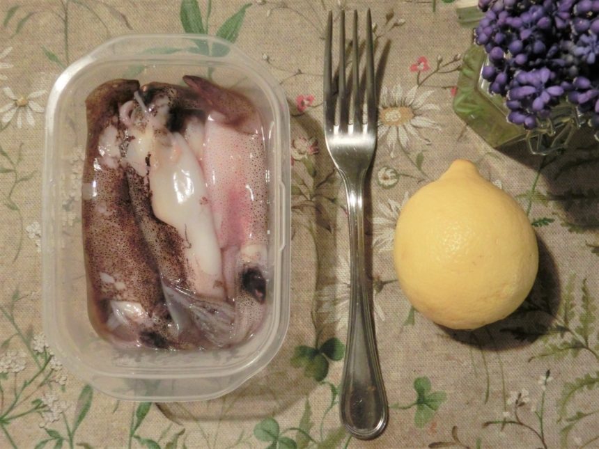 ◎ヤリイカ(イカなら何でも良し、エビでも美味しいかも)・4はい ◎レモン・半個 ◎ニンニク・1かけ ◎スパゲッティ(ファルファッレでも可)・160g ◎オリーブオイル、塩、イタリアンパセリ・適量 ◎好みでピスタチオの砕いたもの