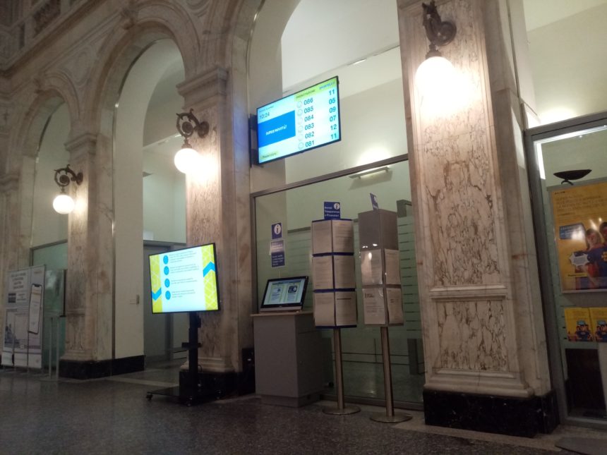そして、フィレンツェ・レプッブリカ広場の中央郵便局へ。番号札が今までのカテゴリーごとから全部一緒になっていたのも当て、私の前には15人くらい・・・とはいえそれなりに窓口は開いていたので、10分ほどで私の番に。