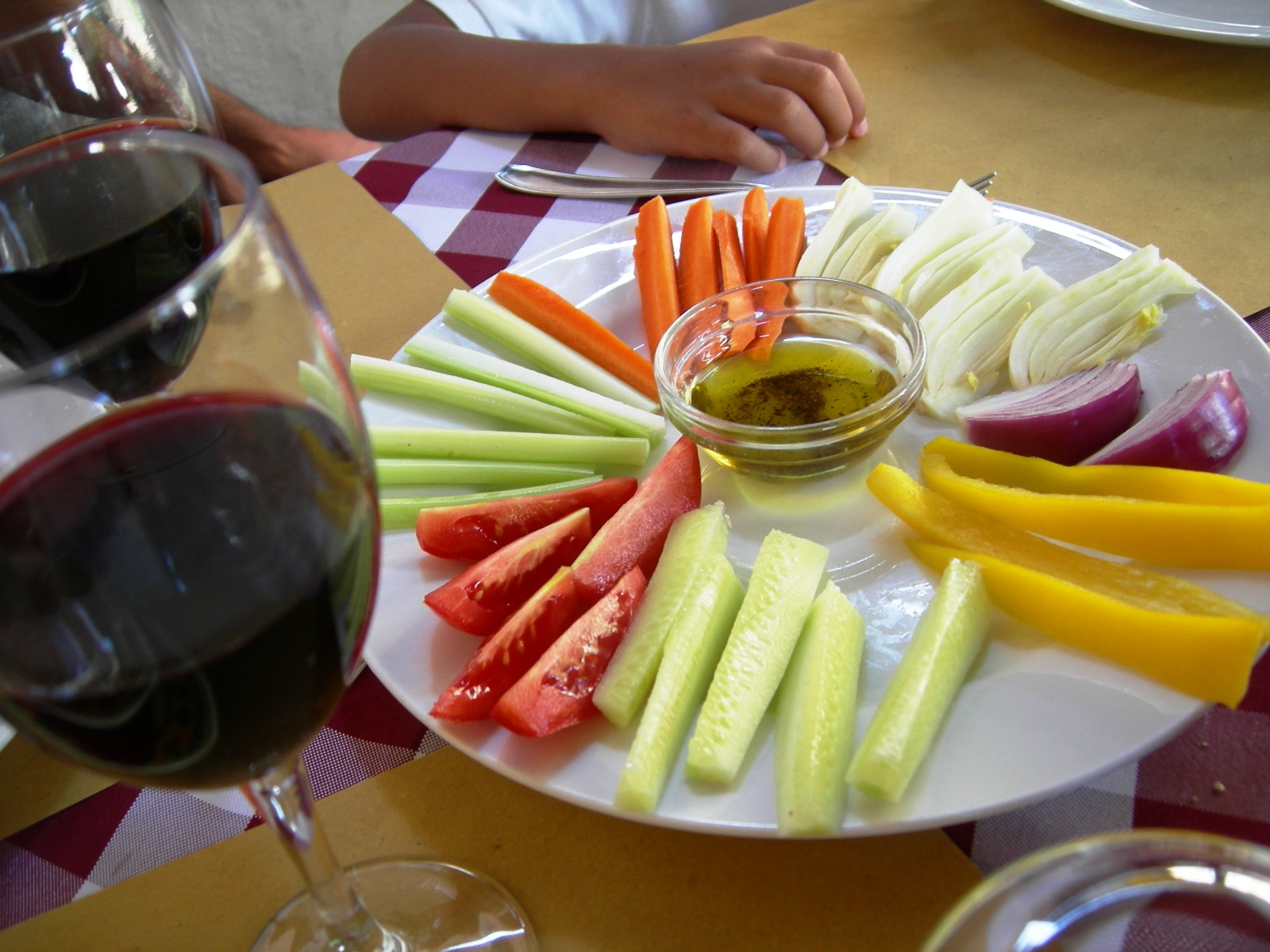 通常トリッパはトマトソースを合わせたものが多いですが、 ヴォルテッラ風はラグー(ミートソース) と合わせています。こってりかと思いきや、そうでもなく、かなり美味しい!今では我が家の定番メニューにもなっています。息子たちがどれだけ食べるか分からない(=私たちが残りを食べる)ので、私たち夫婦は少な目にそれぞれセコンド1皿、付け合わせはピンツィモーニオ(スティック生野菜)をシェア。息子たちは2人でプリモ、セコンド、付け合わせを1つづつ頼みました。プリモも生パスタもなめらかな食感であっという間になくなり、ダンナのタリアータ(牛肉のグリル)、子供たちのウサギ肉のフライも柔らかく。
