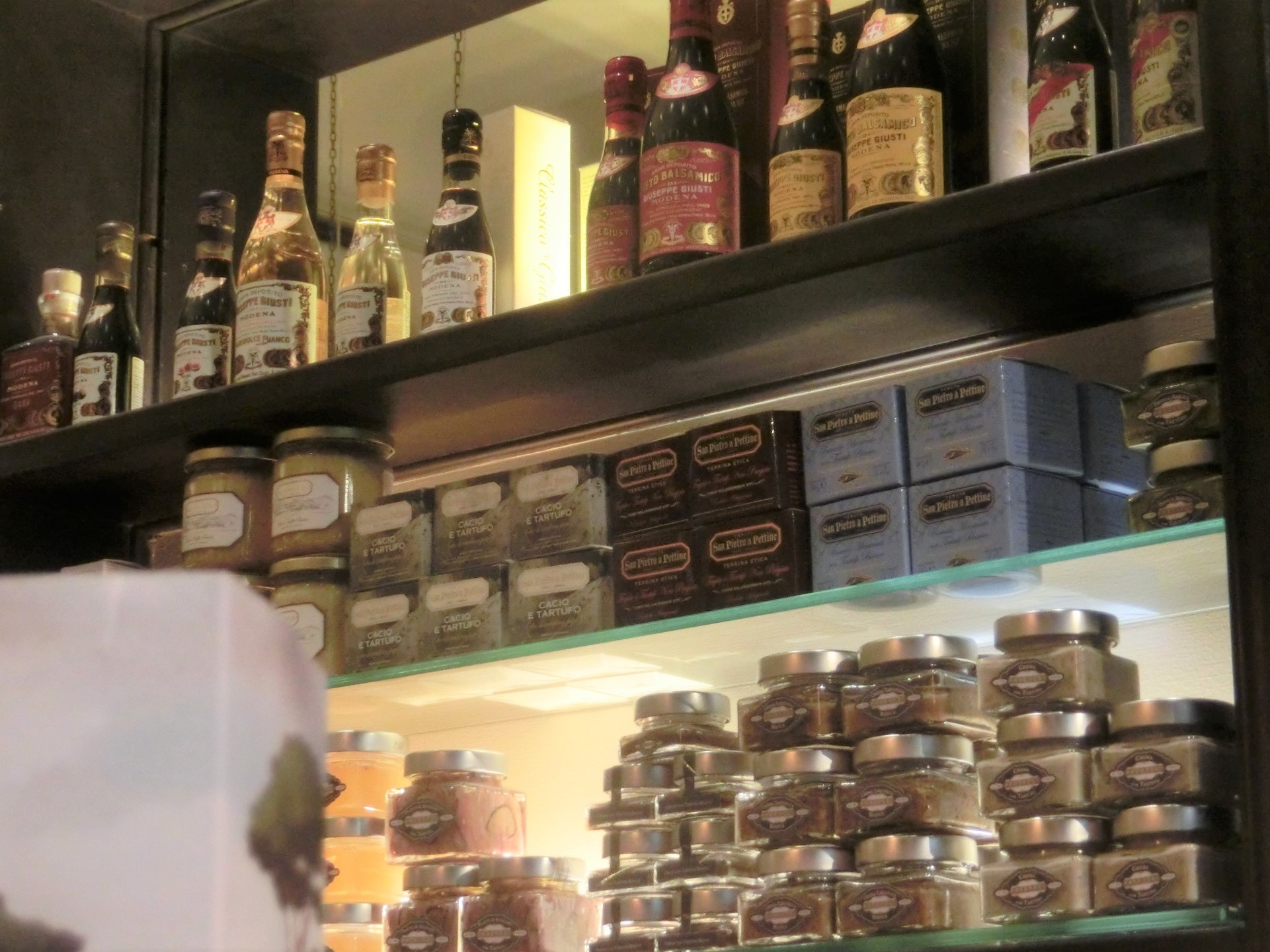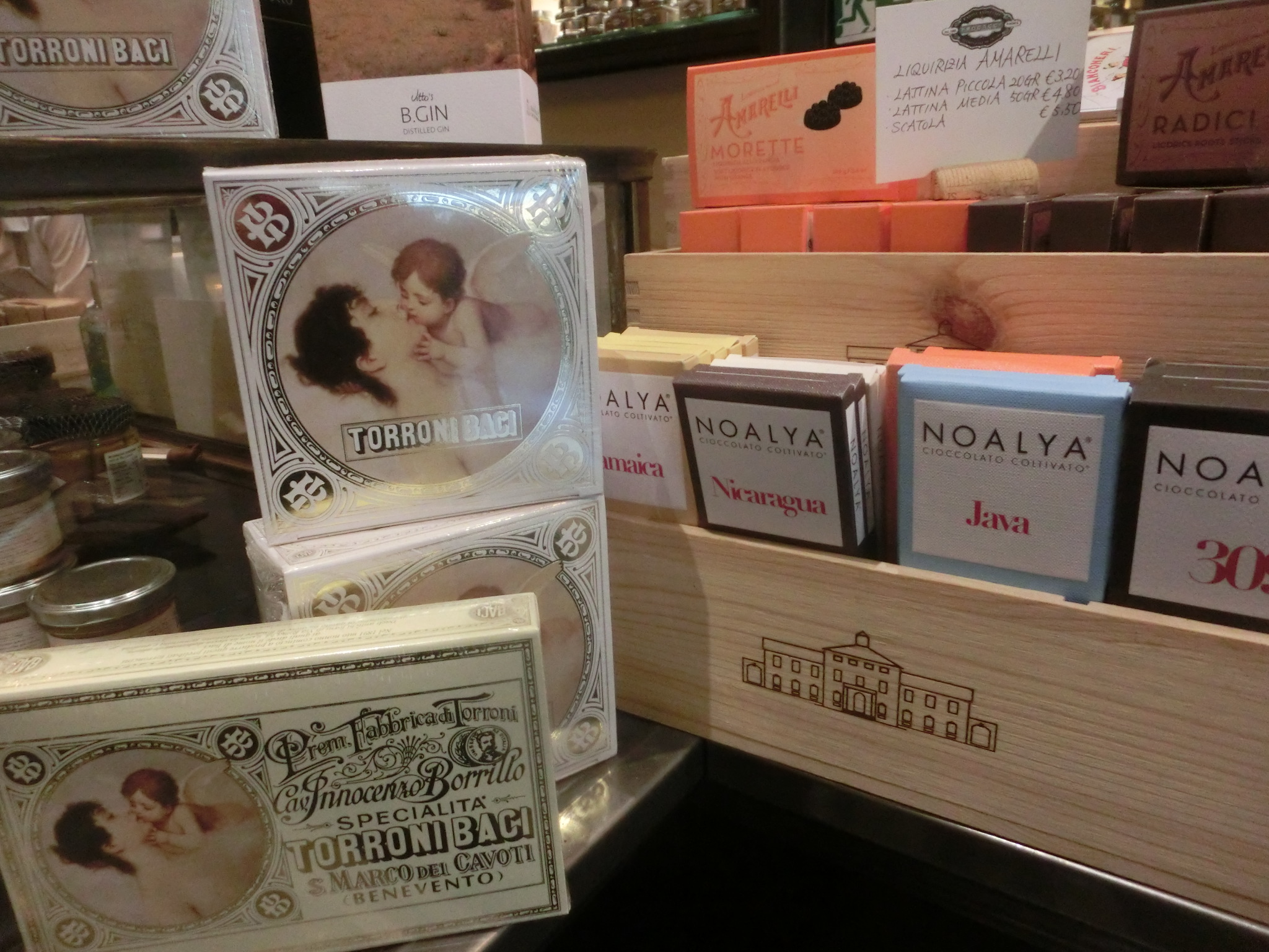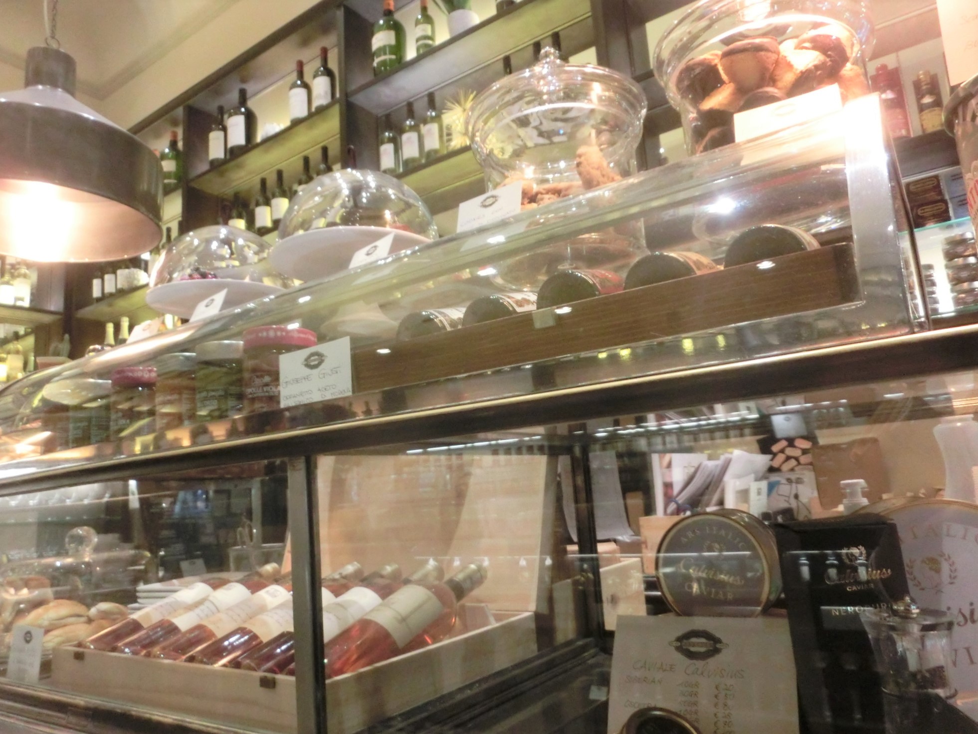 行った日はまだ店内での飲食が禁止でしたが、店内にもカウンター席が少し。そして選りすぐりの食材たちも販売されています。パニーノに使われているトリュフクリームはもちろん、ワイン、チョコレートやトッローニなどのスイーツもあるので、お土産にも良いですね。