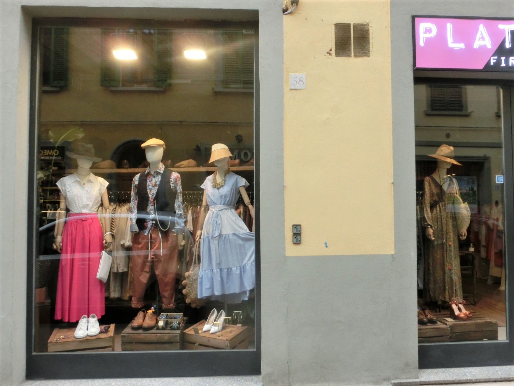 それからは、通りの左右にお店やバールがたくさん並んでいます。冒頭にも書いたように、99%が地元民。通り半ばを少し入ったところにスーパーもあるので、地元の主婦、近辺で仕事している人、散歩している老人など、普段の生活も垣間見えます。そして、お店はフィレンツェ中心部にあるような有名ブランドやZARAなどの世界的ファストファッションでなく、セレクトショップばかり!