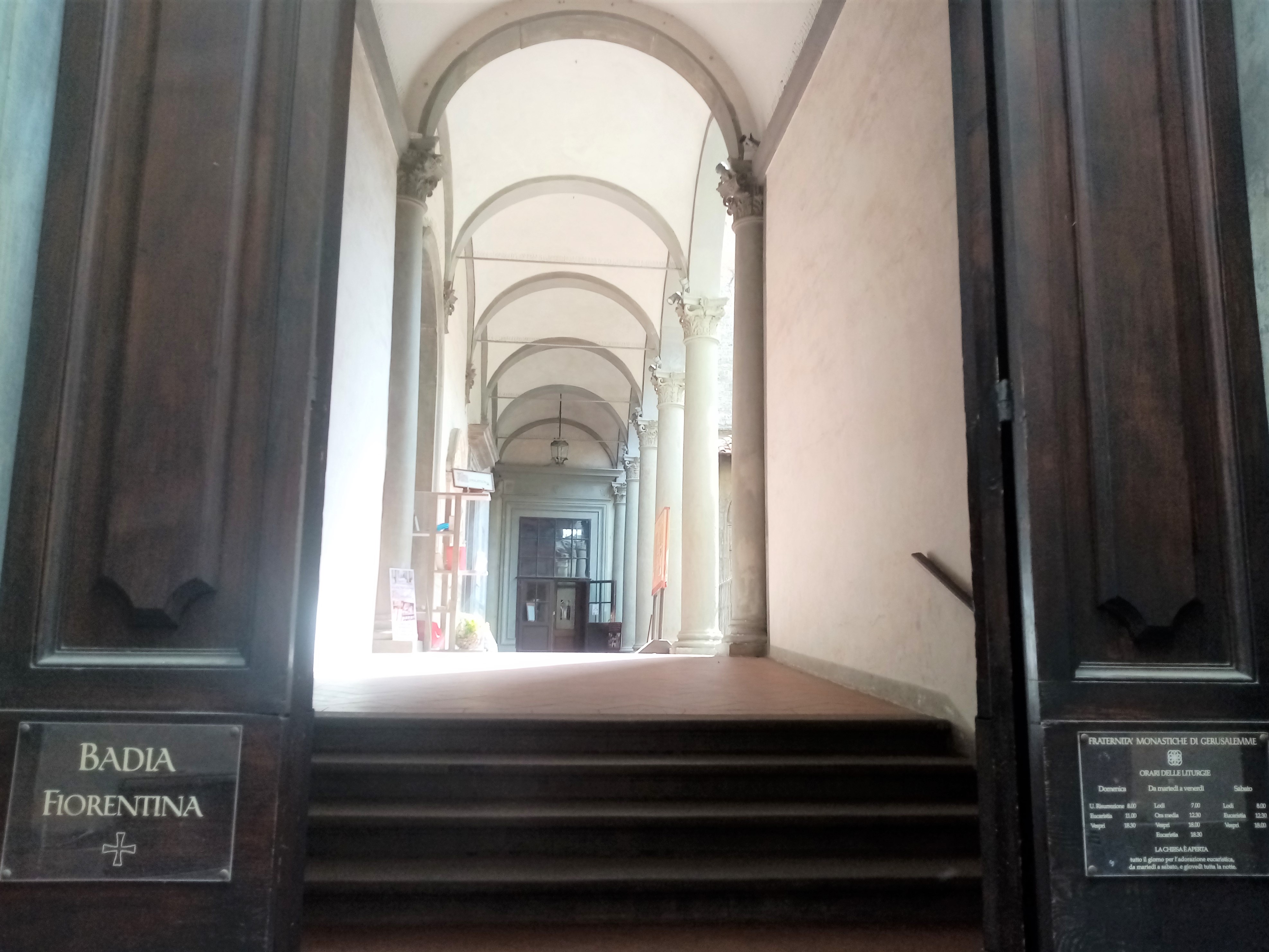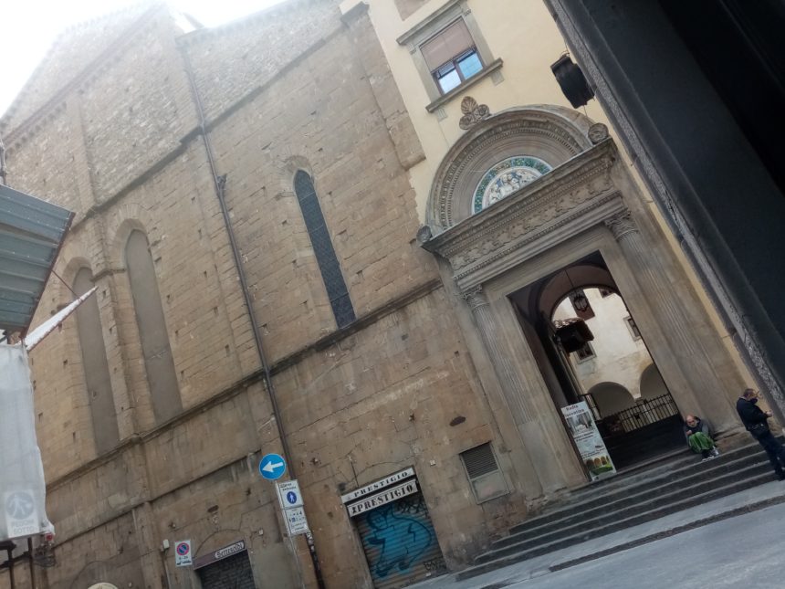 入口は2つ、ヴェッキオ宮殿裏のプロコンソロ通りのほうが分かりやすいですが、こちらも入口の左横に同じ壁でお店が並んでいるので、ぱっと見は教会とは気づきにくいです。もう1つはダンテ・アリギエーリ通りで、そちらから入ると、まっすぐに教会本体の入口が見えます。