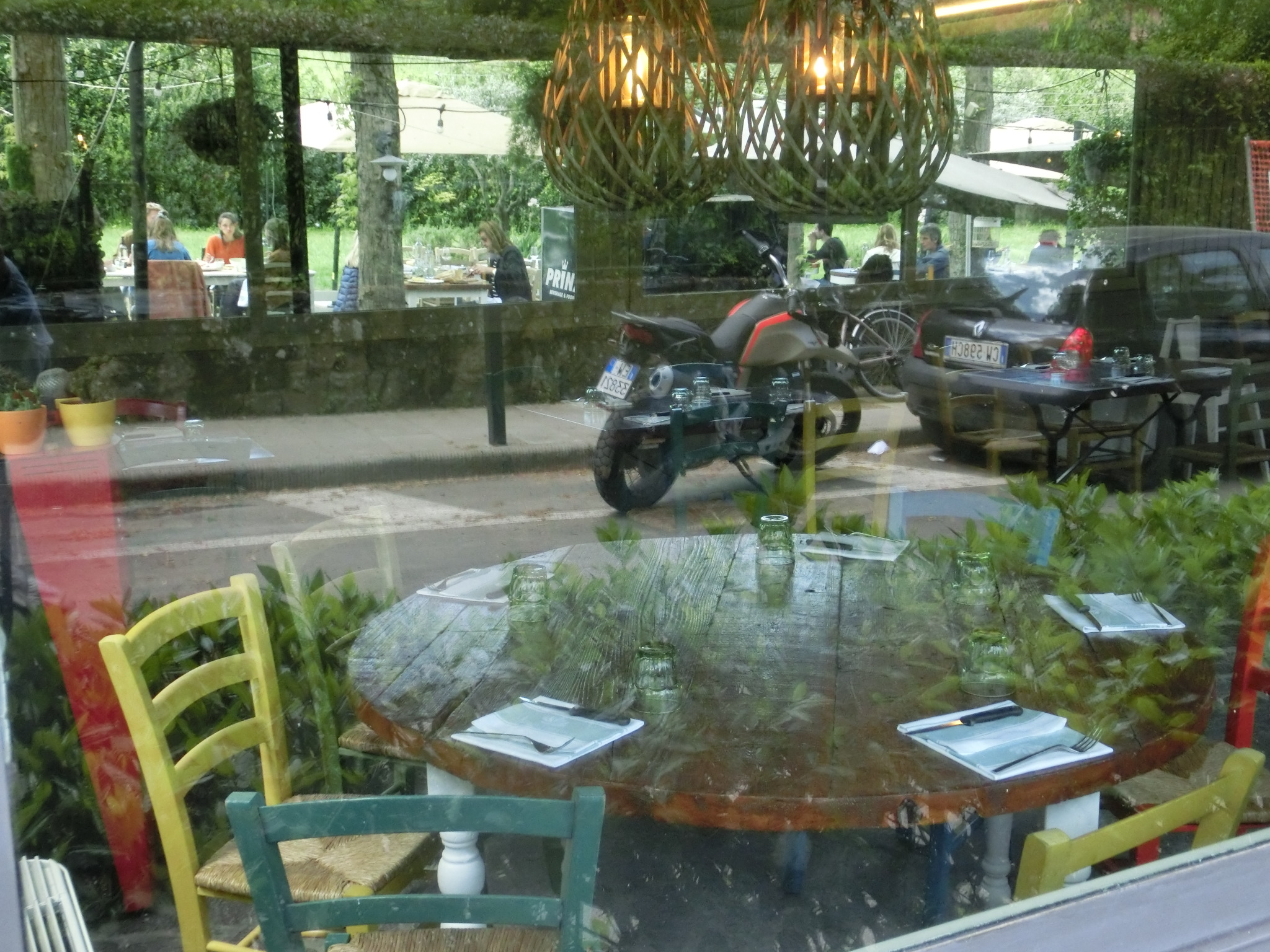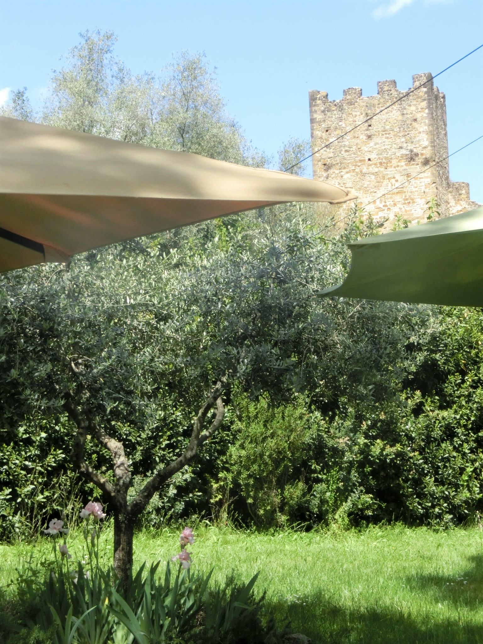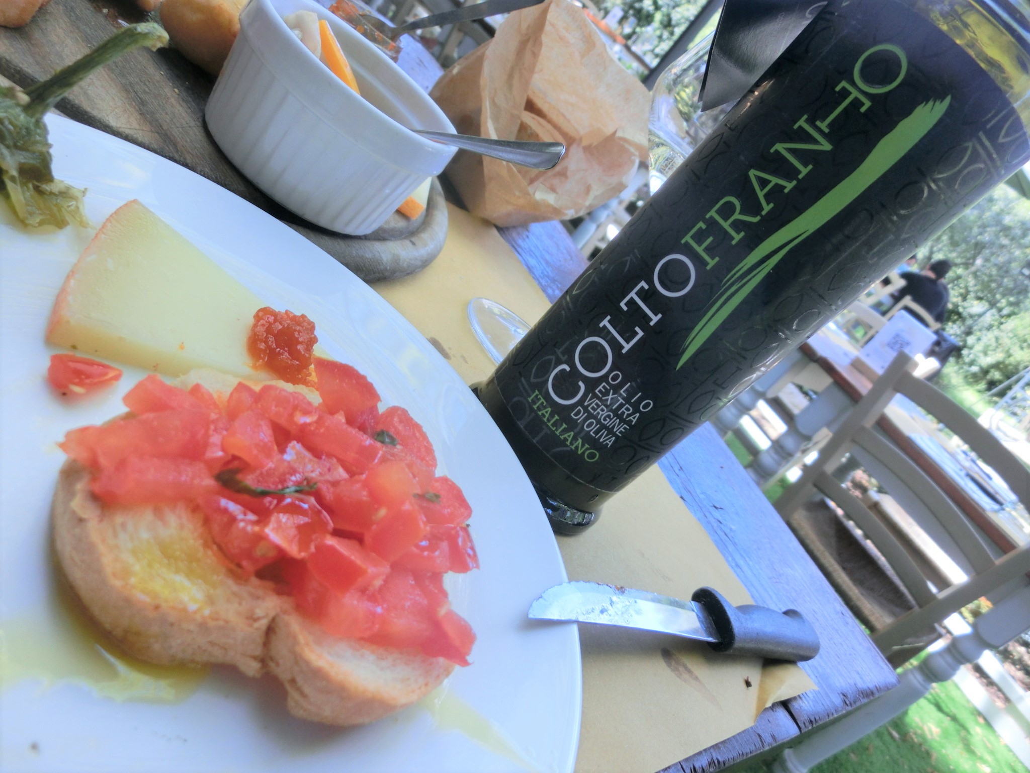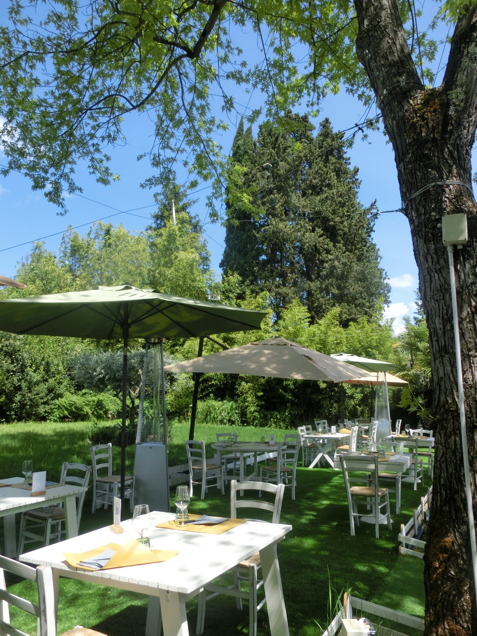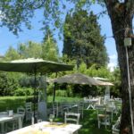 そして Osteria con giardino = 庭つきのオステリア(食堂)とロゴにも書かれているように、大きなお庭にたくさんのテーブルがあり、すがすがしい~!オリーブの木が数本植えられ、奥にはサン・フレディアーノのこちらのお店のように