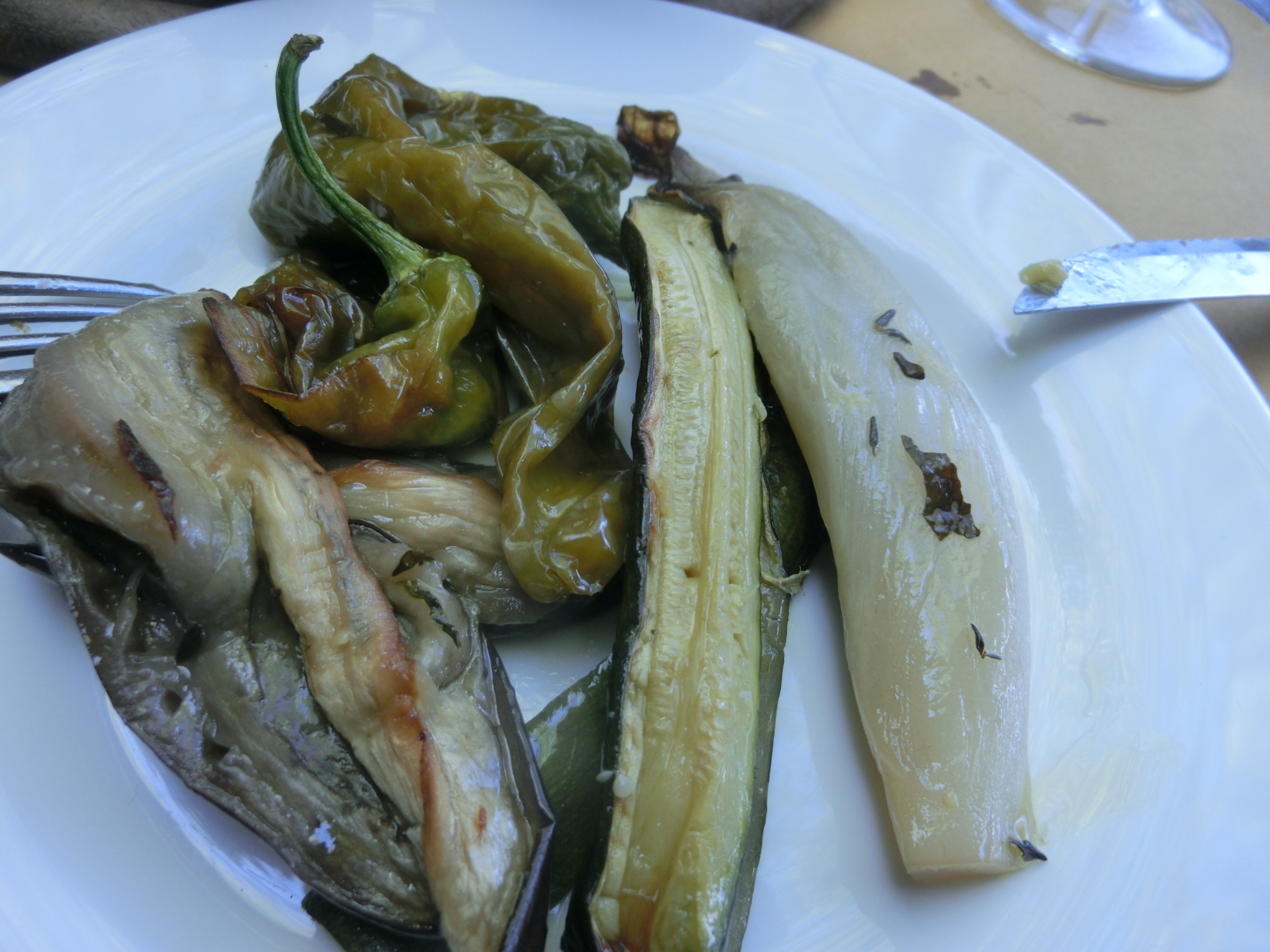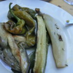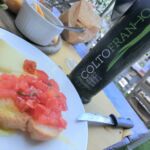写真手前より、トマトのブルスケッタ、ズッキーニの花入り卵焼き、各種野菜のグリル、中心にはコッコリ(揚げパン)、ペコリーノチーズ2種とチーズ用のジャム、ココットに入っているのは野菜のビネガー漬け。こうやって写真で見ると、また野菜だから食べられそうな感じがするかもしれませんが・・・これがすんごいボリュームで(笑)。すべて美味しかったのですが、私の中のヒットは