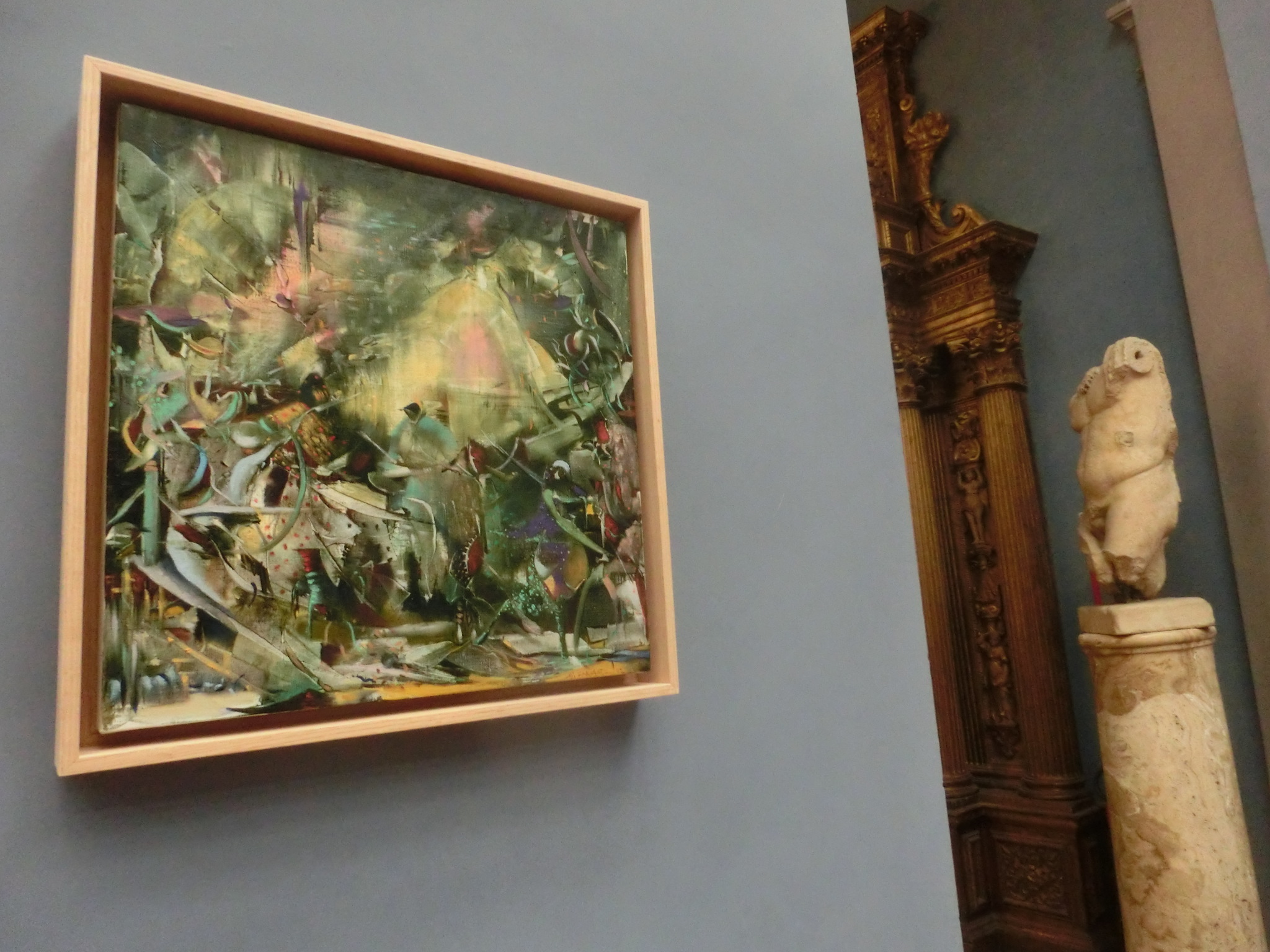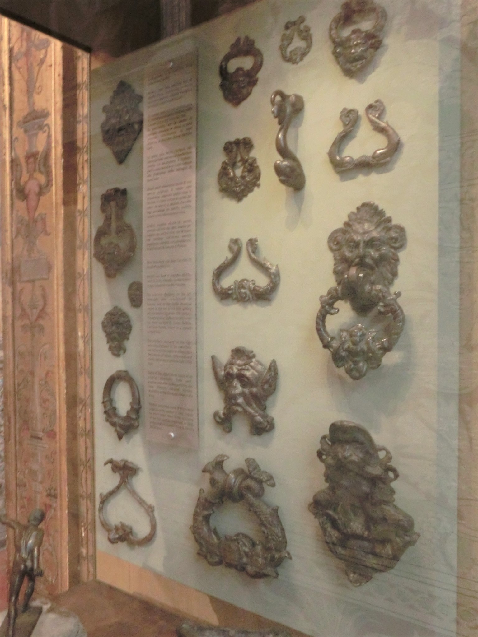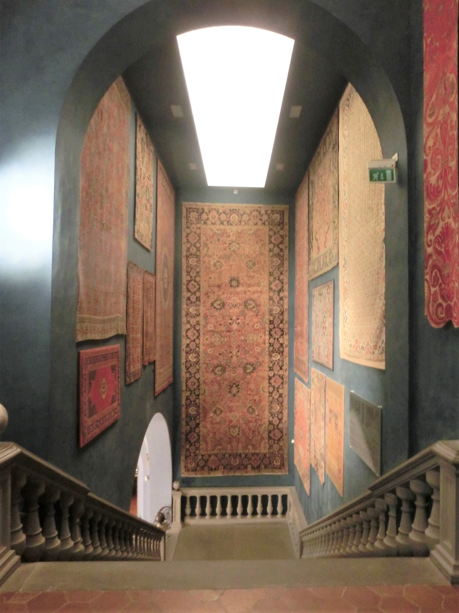 二階には他にも、陶器を並べた部屋、その一角には額をだけの壁、ドアのノブだけの展示、そして大型絵画の部屋などがあり、上った階段とは別の階段には、いろんな国のいろんな時代のカーペットが壁面に。とにかく、どのディスプレイも何気ないようで考えつくされた?、その空間に魔法をかけられたようにぐっと心をつかまれます。