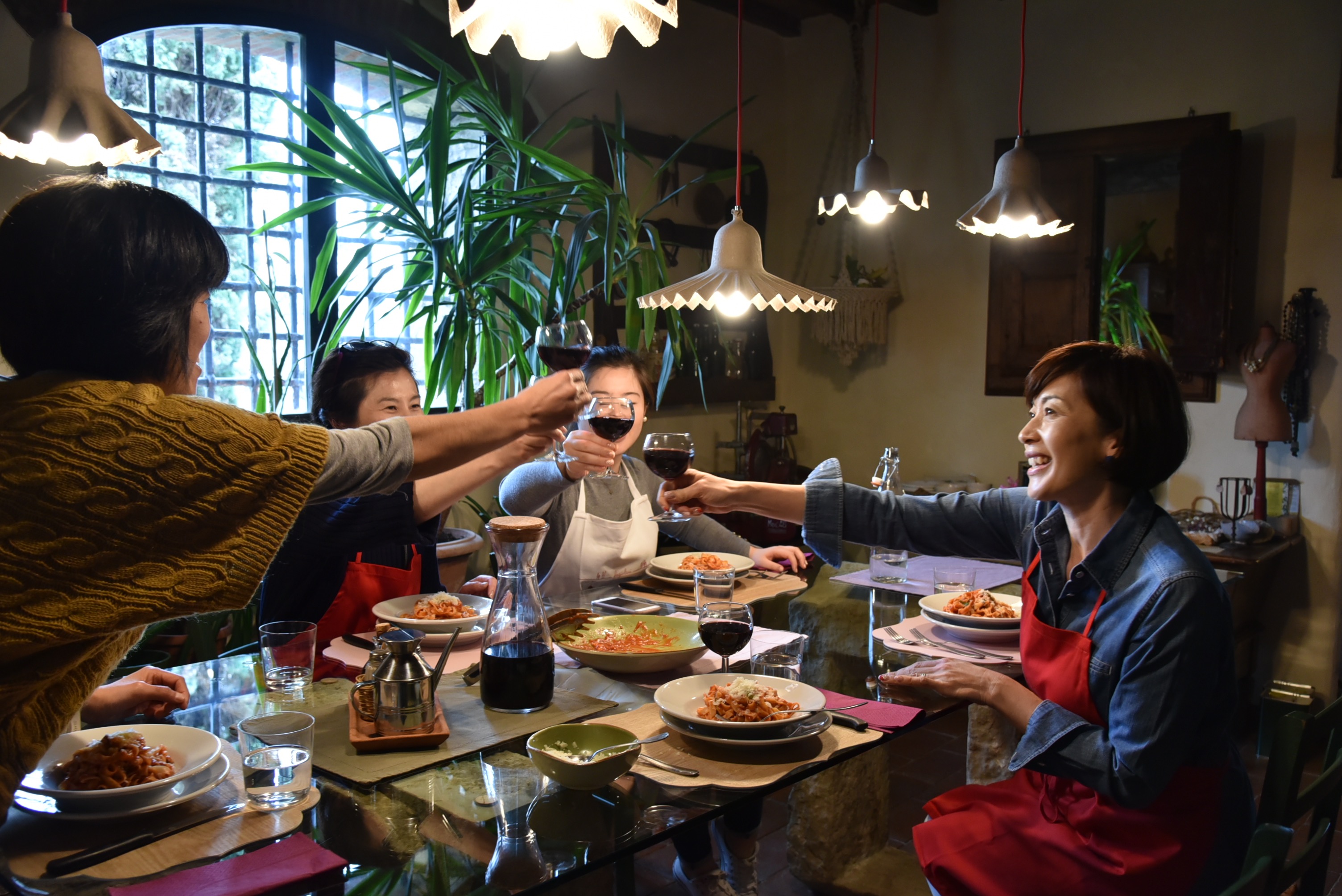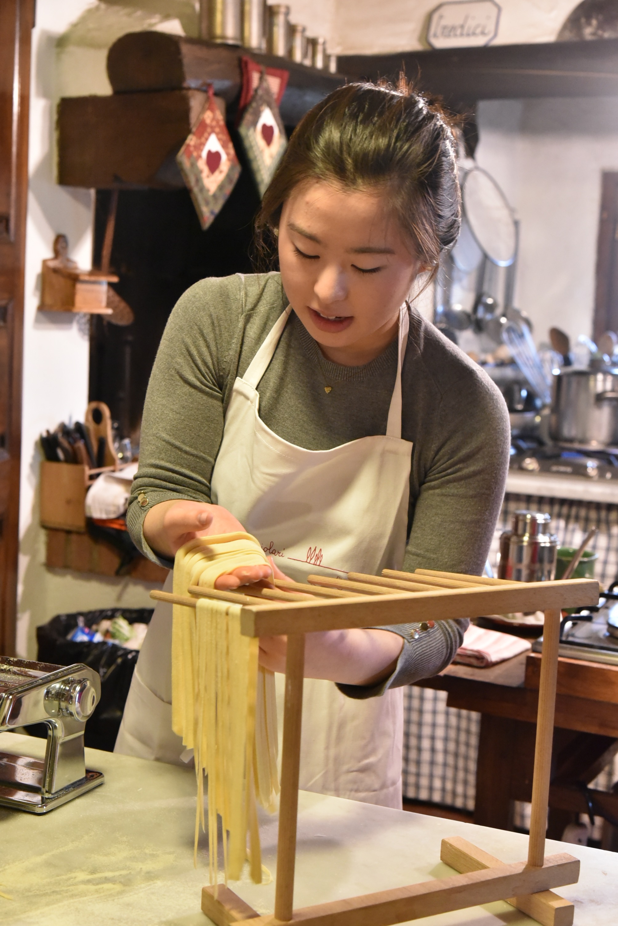 先生のアンナは元々法律事務所に勤務していましたが、料理への情熱をあきらめきれず、専門学校で学び、自らの料理教室を2007年、トリノで開講。トスカーナ以外の郷土料理、外国料理やビーガン料理にも詳しいです。ここでは料理レッスンの他、朝食、オプションの食事も全て彼女が用意してくれますが、料理だけでなく盛り付けやコーディネイトもとっても素敵なんですよ。