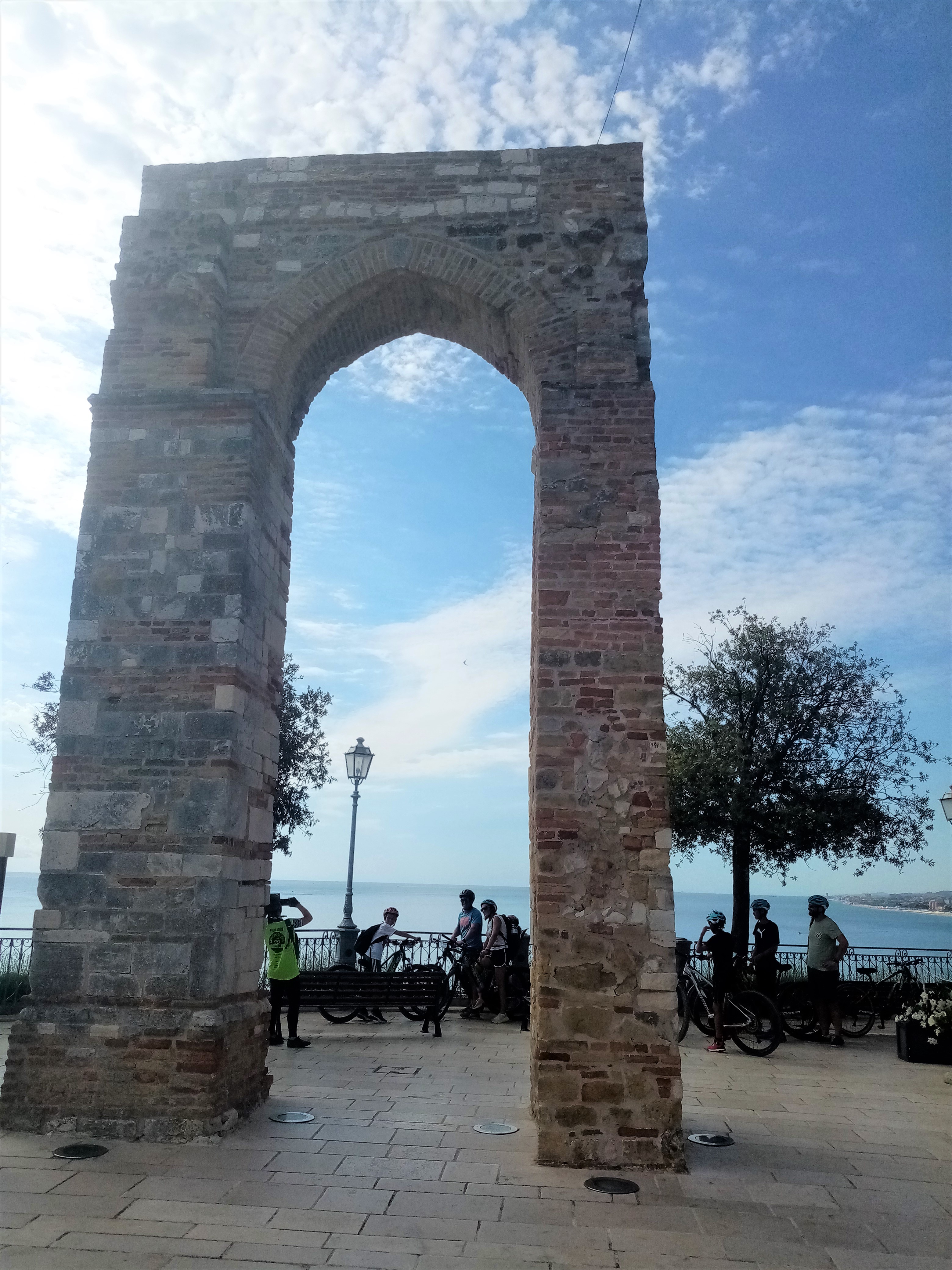 そしてこちらが、ヌマーナのビーチと港。マルケ州屈指のリゾートなので、遊覧船や個人ヨットなんかも見えます。そこからは、幹線道路から山の方に入り、どんどん上りに・・・ガイドさんが話していたのは、負荷の度合いと、ギアのチェンジ+電動アシストの3段階のバランス。体力バリバリの次男は敢えてアシストOFFとか、頑張ってECOにしてたらしいけど、アラフィフの私は無理は禁物!で、きついと感じたらすぐに電動アシストON、アシスト度を上げてました。逆に平地や下りはオフにして、かつできるだけこがずに今までの動力を継続させるように。