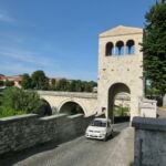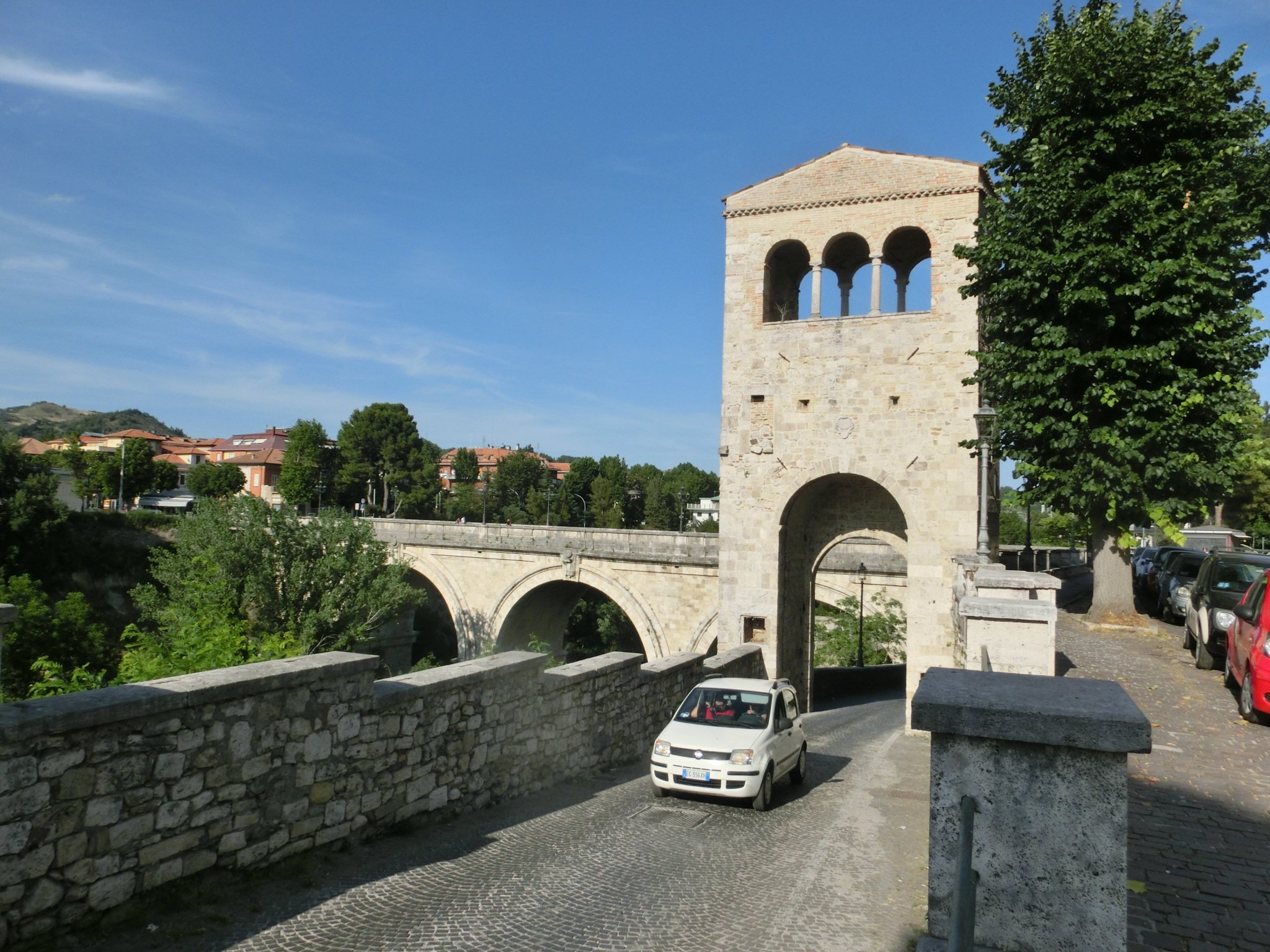 地図を見ながら知ったことは、この町はトロント川、そして支流のカステッラーノ川によって3方が囲まれていること。なので、町に入るのには橋を渡ってアクセスすることが多いのです。それらの橋を見に旧市街の東側を歩きましたが、北東のエリアは高低差のある橋がかかっており、アスコリが川からかなり高い位置にあるのがよくわかりました。