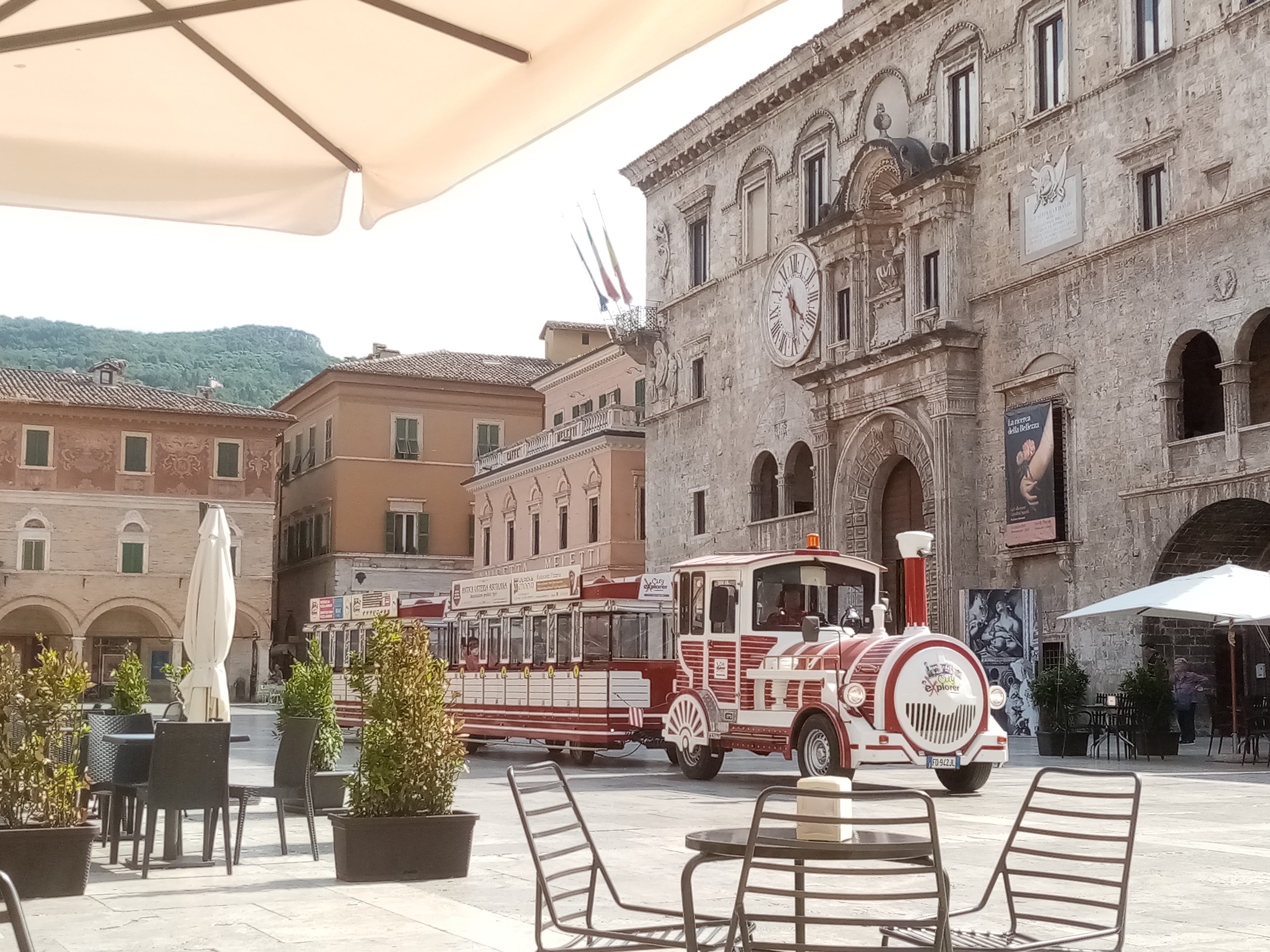アンコーナより直通電車で約2時間。電車の乗り方などについてはこちらを参照ください。アスコリ・ピチェーノ駅から旧市街中心のポポロ広場までは徒歩15分です。