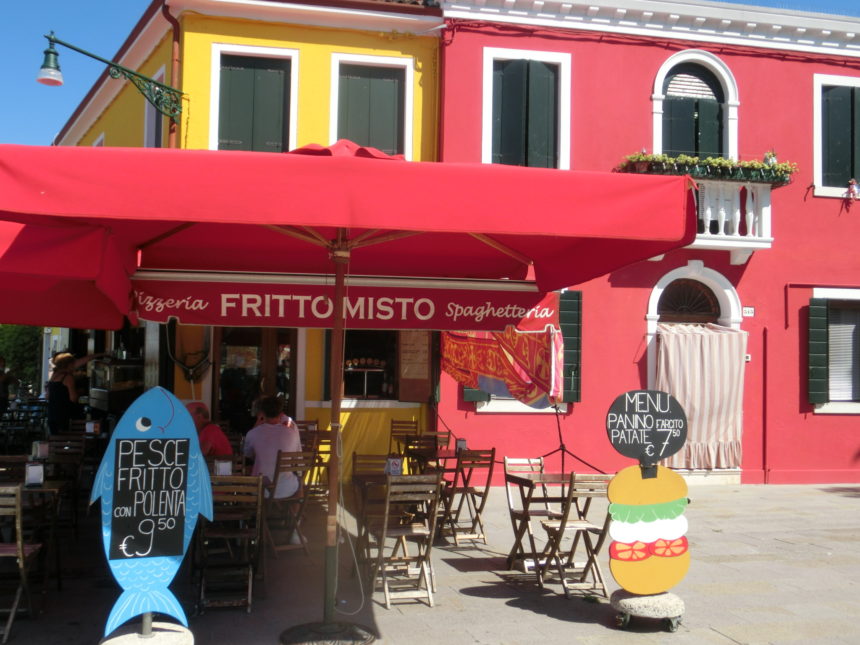 2016年にヴェネツィア近郊で通訳の仕事があり、ヴェネツィア在住の友人が「うち泊まりにおいで〜」と言ってくれたおかげで、1人でヴェネツィアという幸運に恵まれました。まっさきに行きたかったのが、大好きなブラーノ島。その時にたまたま見つけたのがこのお店!たまたま、というか、水上バス停留所の真ん前なので否が応でも目に入ります。レストラン入るほどでもないけど、席に座ってお腹いっぱい食べたいって人にはぴったりなのです。