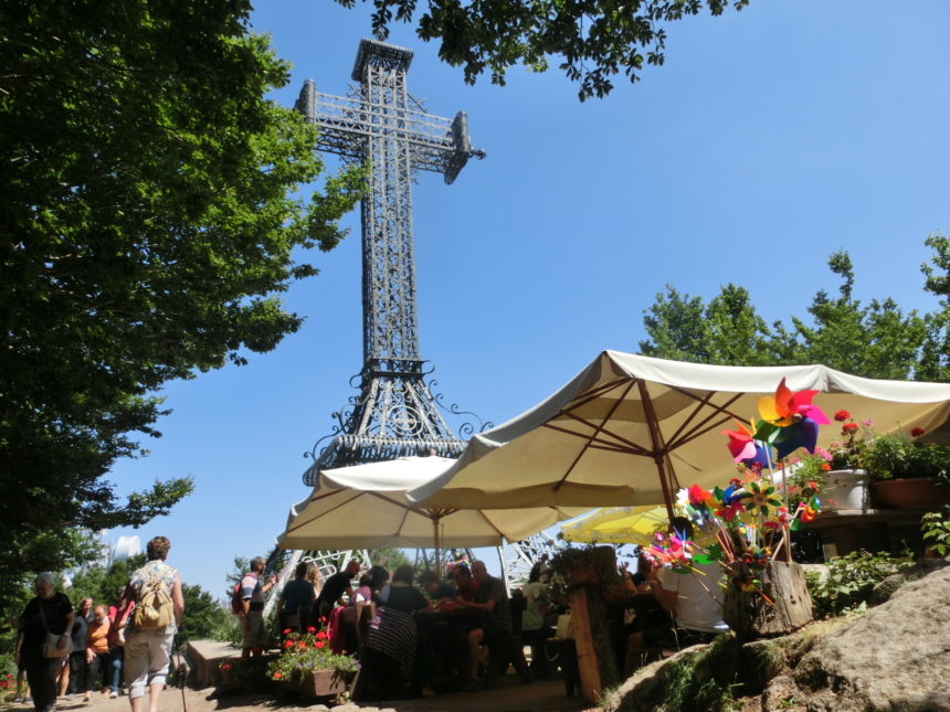 そして見るべきもの・その1が、この鉄製の十字架。1900年の聖なる年の記念に、当時の教皇レオ13世の命でイタリアの山の頂に10の十字架建設が企画され、アミアータ山の十字架はその9つ目になります。基礎は800m四方で高さは22m。1910年に完成しましたが再二次世界大戦の爆撃で被害を受け、1946年に再建されたものです。