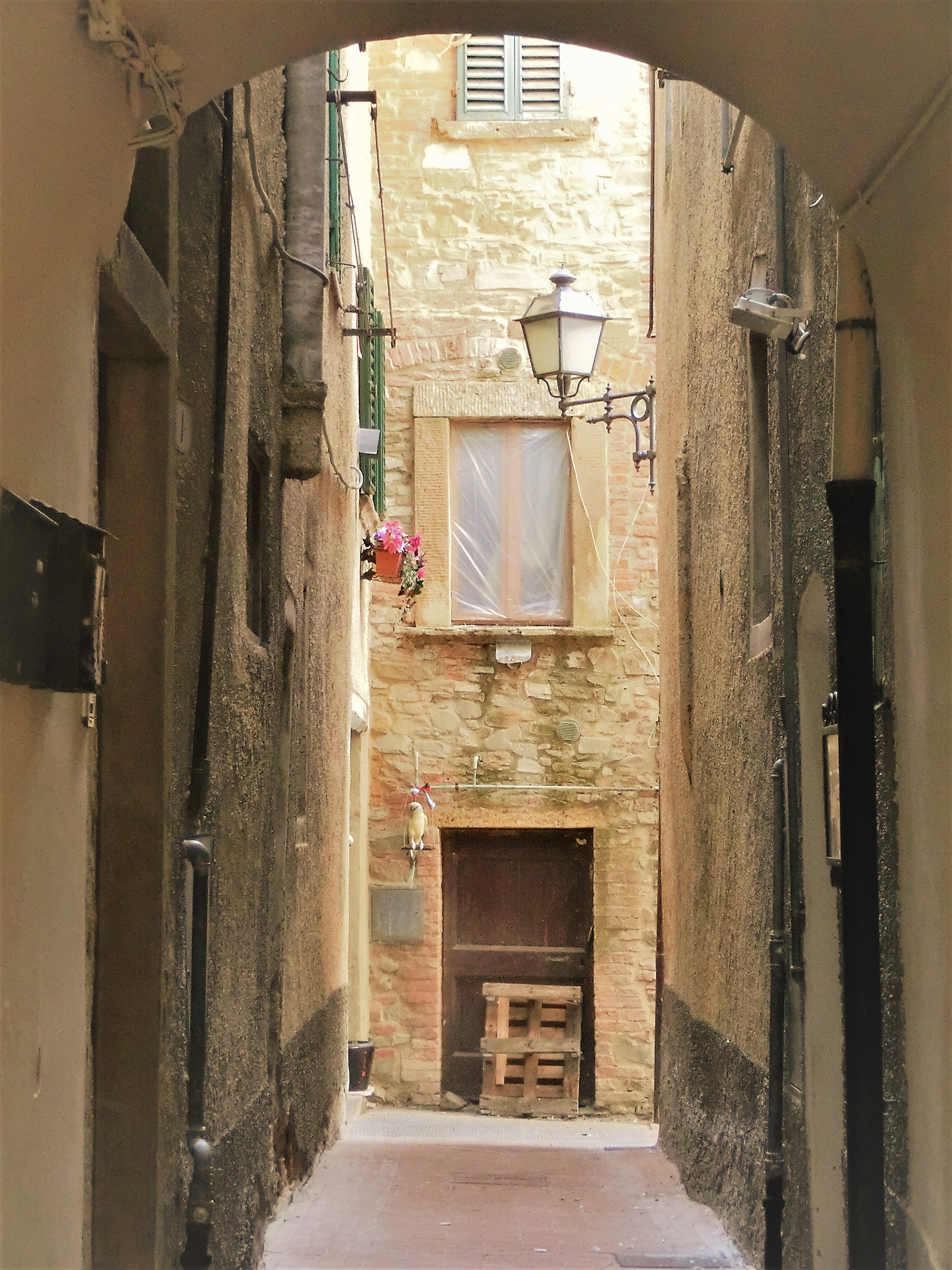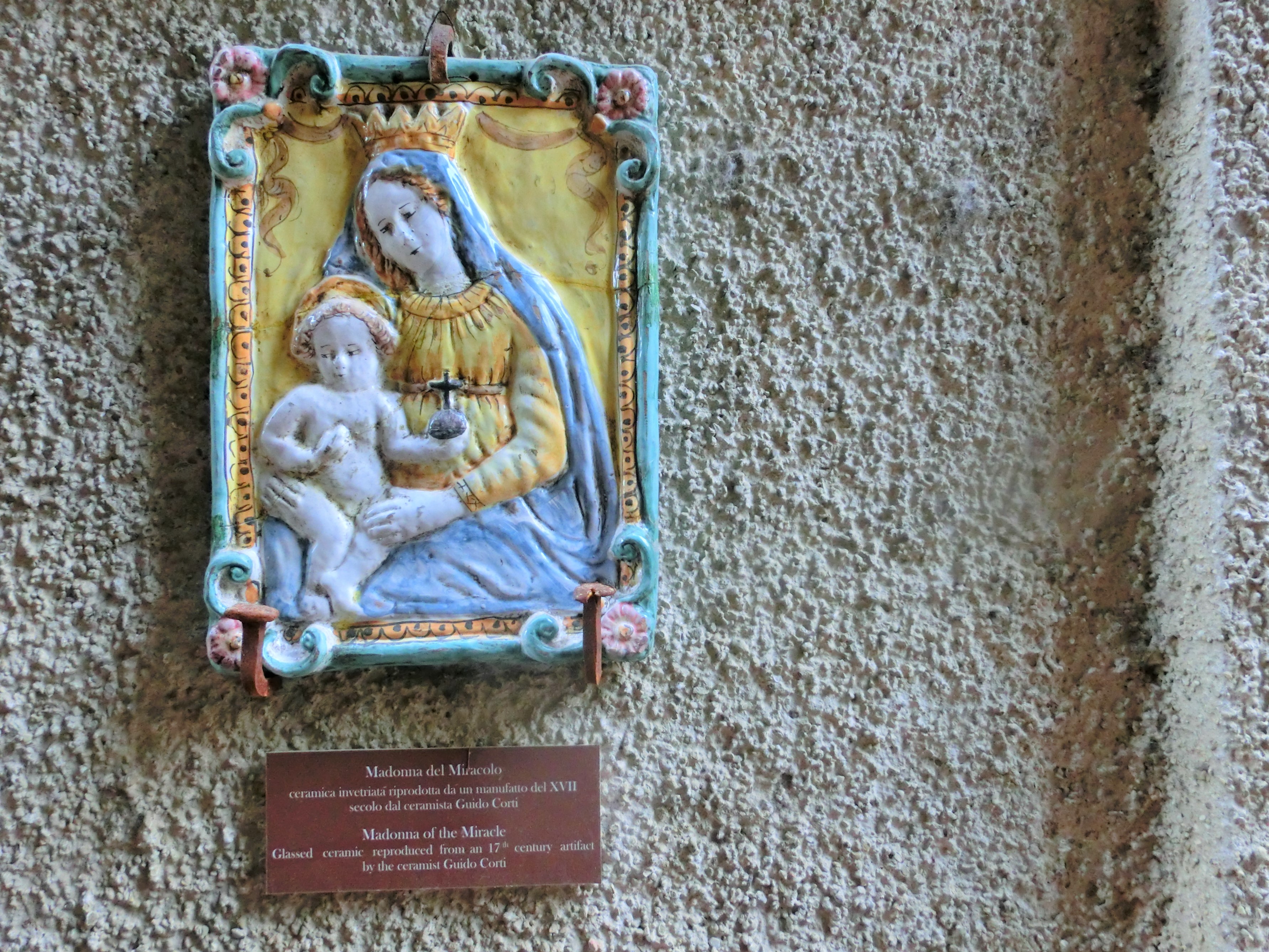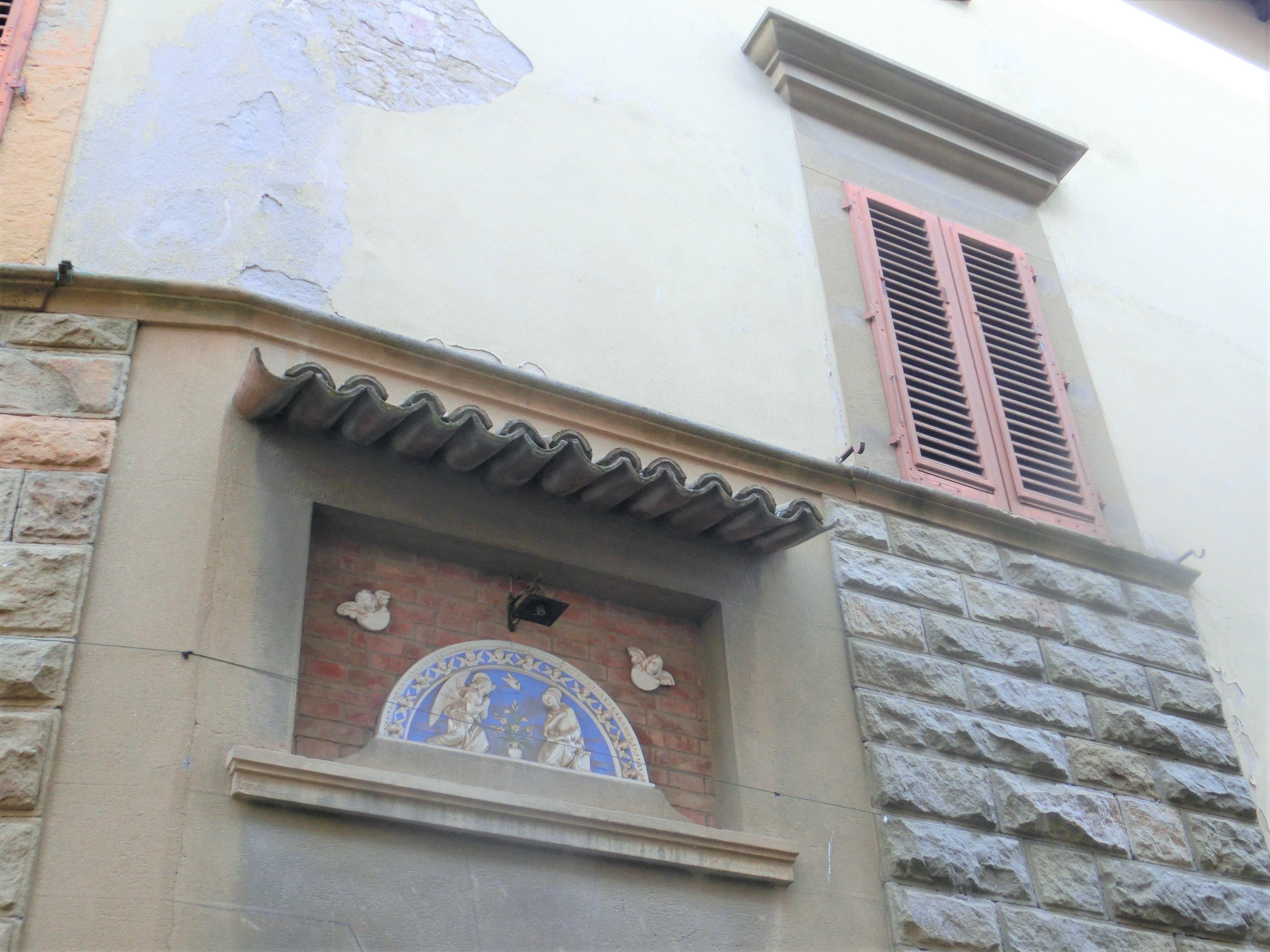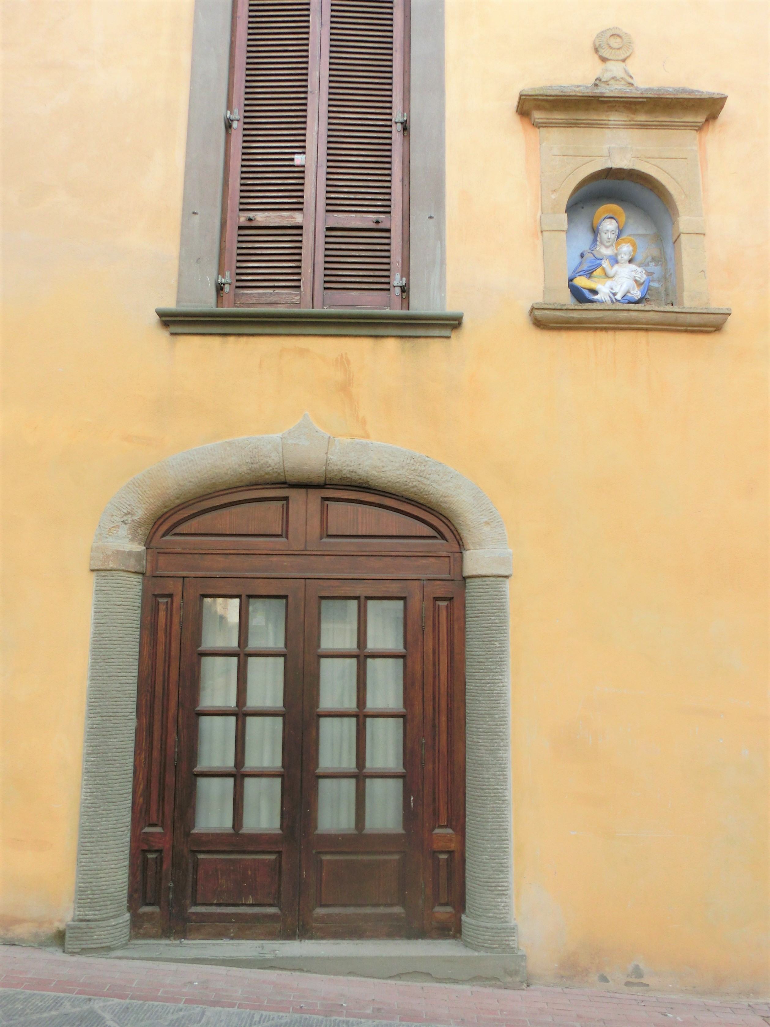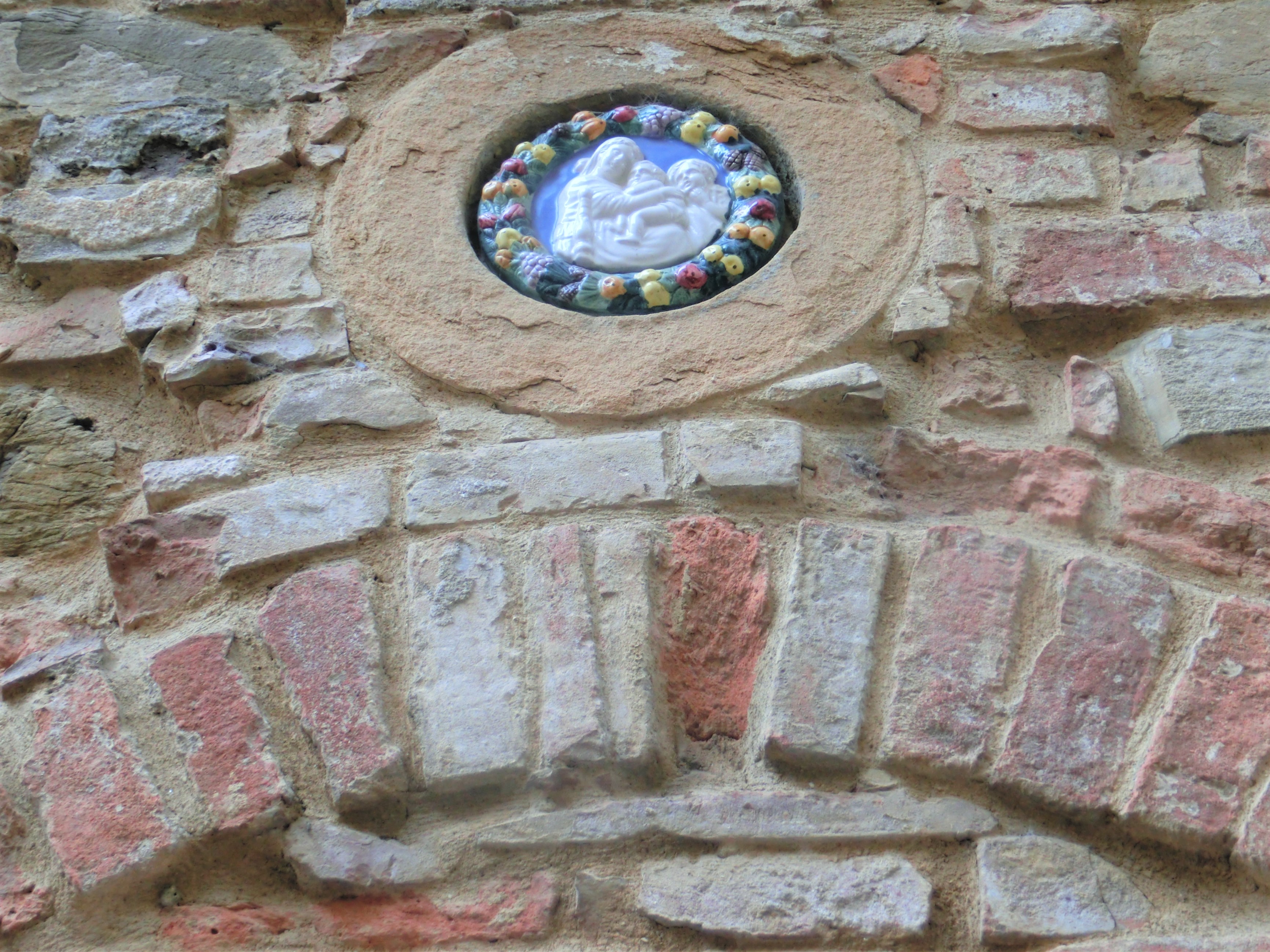 プレトリオ宮から先に進むと、もう1つの重要な建物・マンナイオーニ宮。こちらは16世紀、フィレンツェからモンタイオーネに引っ越してきた公証人・マンナイオーニのお屋敷です。現在はチェーンのホテルになっているようですが、私tが訪問した時は閉まっていました。玄関の右上にある色彩テラコッタの聖母子像が可愛らしかったのですが、このほかにも村の中に3か所、小さな聖母子像の色彩テラコッタを見つけほっこりしました。