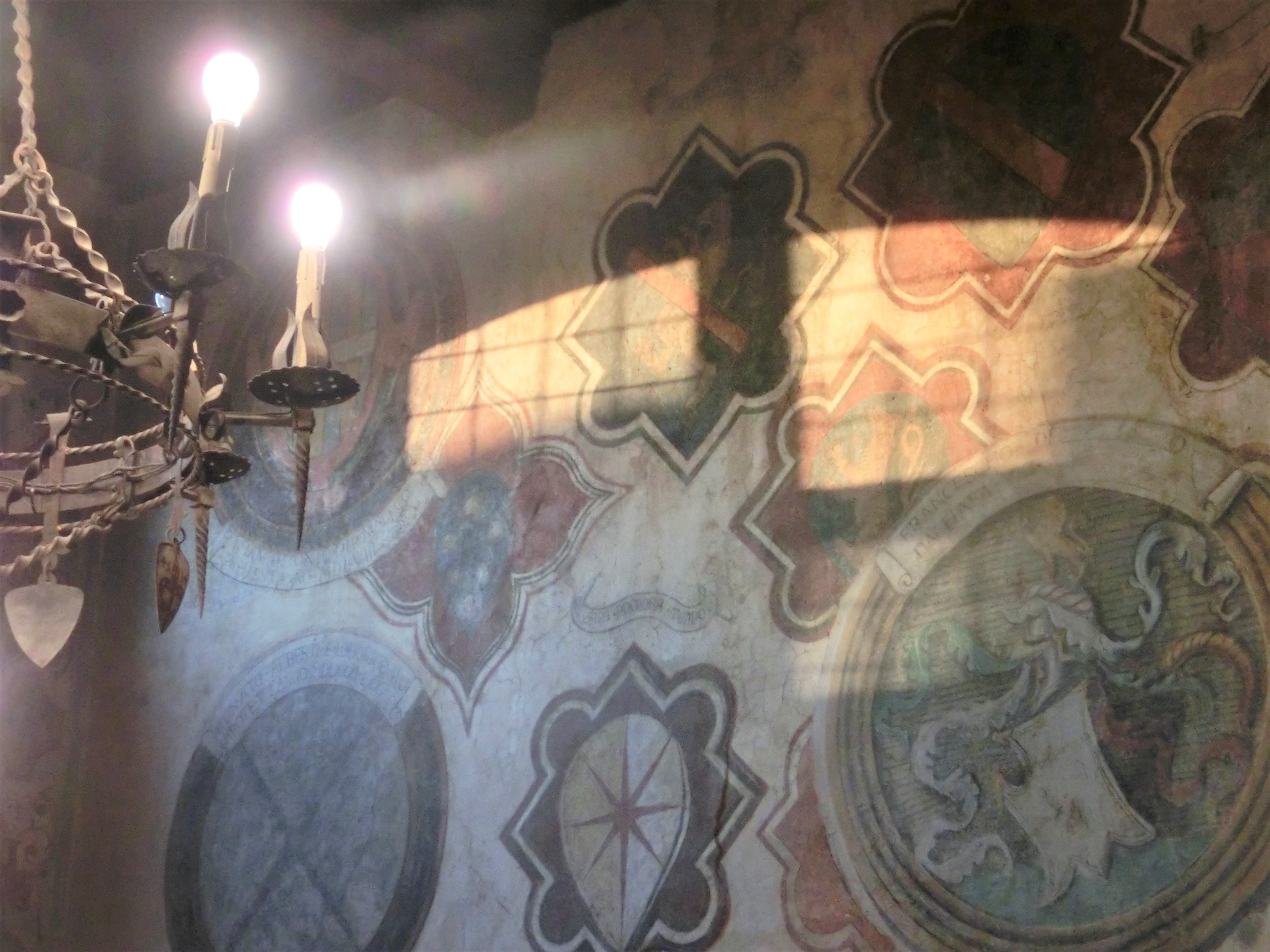 十分に夕暮れを楽しんだ後は、オレンジに照らされたヴィカーリ宮殿ホールも堪能。ここに暮らしてた600年前からのヴィカーリたちも、こんな風にして夕日を見ながら杯を傾けていたのでしょうか・・・妄想にふけります。