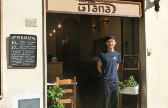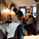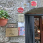 今回は秋の栗祭りの機会に行ってみました。コロナの影響でアミアータ山の村の秋祭りは中止か縮小で例年の賑わいがなかったのは残念でしたが、美しい秋の風景、そして前から入ってみたかったレストランに行くことができました。それがこちら、イル・バリオット。サンタ・フィオーラの旧市街は上下に分かれていますが、このお店は上のカステッロ地区、メインのガリバルディ広場からサンタ・フィオーラとサンタ・ルチッラ教会を結ぶカロリーナ通りにあります。カロリーナ通りはTOP写真のように細いですが、各種レストラン、食材店などいわばサンタ・フィオーラ旧市街のメインストリート。趣のある石造りの建物にレトロな看板、それもそのはず、ここは1927年創業の老舗のレストランなのです。