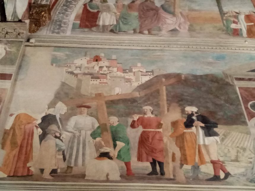 その時のテーマは1400年代の画家「ピエロ・デッラ・フランチェスカ」。彼の作品が残るフィレンツェ、アレッツォ、サンセポルクロ、モンテルキだけでなく、トスカーナ州を超えてペルージャやウルビーノまでも行きました。取材の主な相手は学芸員さんや財団の方だったのですが、リミニだけは特別。教会の中にあるフレスコ画だったのでまず教会にコンタクトをとったももの、お話を聞ける方はその教会の神父さんだけだったのです。面白そうですね、とおっしゃったのでアポをとり、「神父さんとはいえ、何かしらの知識やエピソードはあるだろう」と予想していたのですが・・・出てきたのは足元もおぼつかず目線も定まっていないようなご高齢の方。何を聞いても「・・・知らない」がほとんどで、「マラテスタの後ろの犬はなぜ描かれたのでしょうね?」の問いかけに「・・・犬が好きだったんじゃないの。知らんけど」(関西人か!!)
