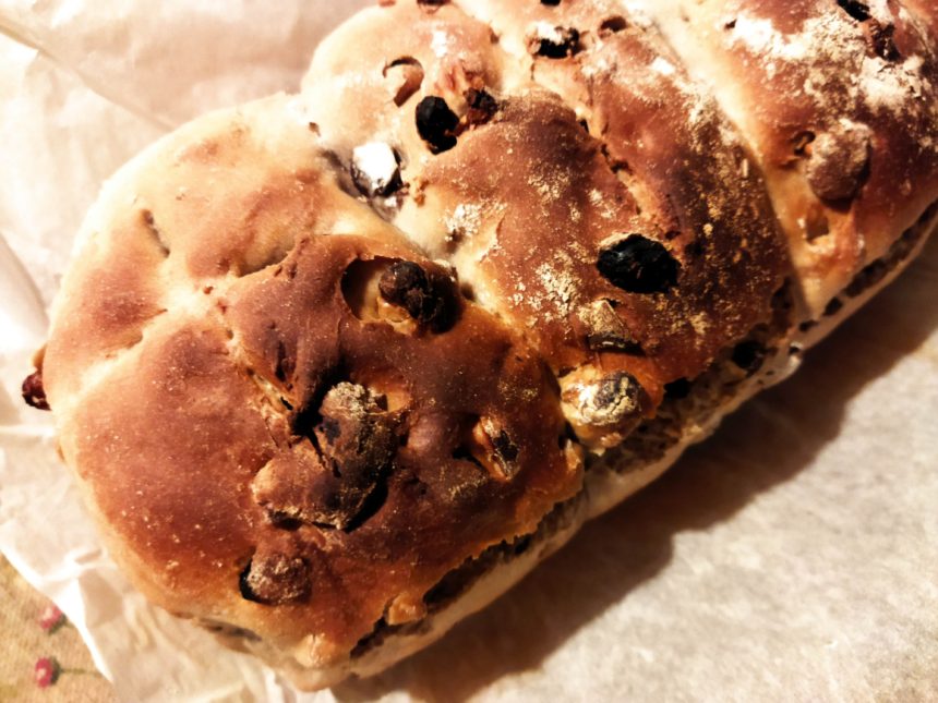「今度、パン・ディ・サンティ作って!」……いつものようにパンを焼き上げたら、突然ダンナが言い出しました。そういえばこないだは諸聖人の祝日だったなぁ?まさにこの時期にシエナやグロッセートで食べられるパンのことでした。調べてみると、レーズンやナッツが入った少しだけ甘いパン。レシピによってはコショウやアニスなどスパイスも入りますが、我が家ではおやつパンとして食べたかったので、スパイスはなしで。伝統レシピでは油分は豚の油脂(ラード)ですが、我が家ではバターで代用しました。食べても見るとほんのり甘く、おやつとしてだけでなく普通の食事のお供に、またパニーノにも使えそう。うちのダンナもスライスしてヌテッラを塗ったり、はたまたサラミを挟んだりしてたので、いろんなことに使えるのでこの後も何回も焼いているお気に入りパンになりました。参考にしたレシピは、やはり見やすい Gallo Zafferanoより。下記に日本語に訳しますね。
