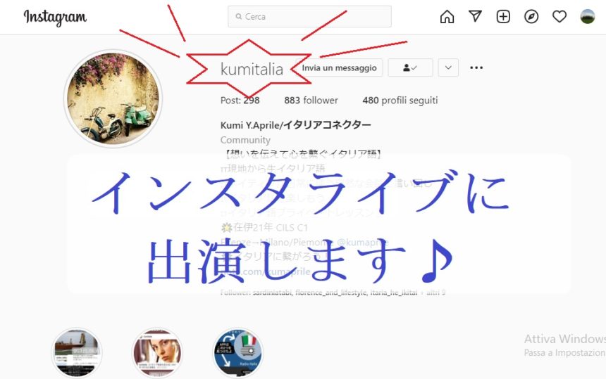 kumitaliaさんはインスタでイタリア語の生きた言い回しや、単語の使い方など、参考書や一般的なイタリア語レッスンでは習わないようなイタリア語を発信しています。面白いな~と思ってフォローさせていただいていたのですが、彼女がこの12月から24日まで行う「アヴェントライブ(クリスマスまで毎日1回ライブ)」を聞いていると
