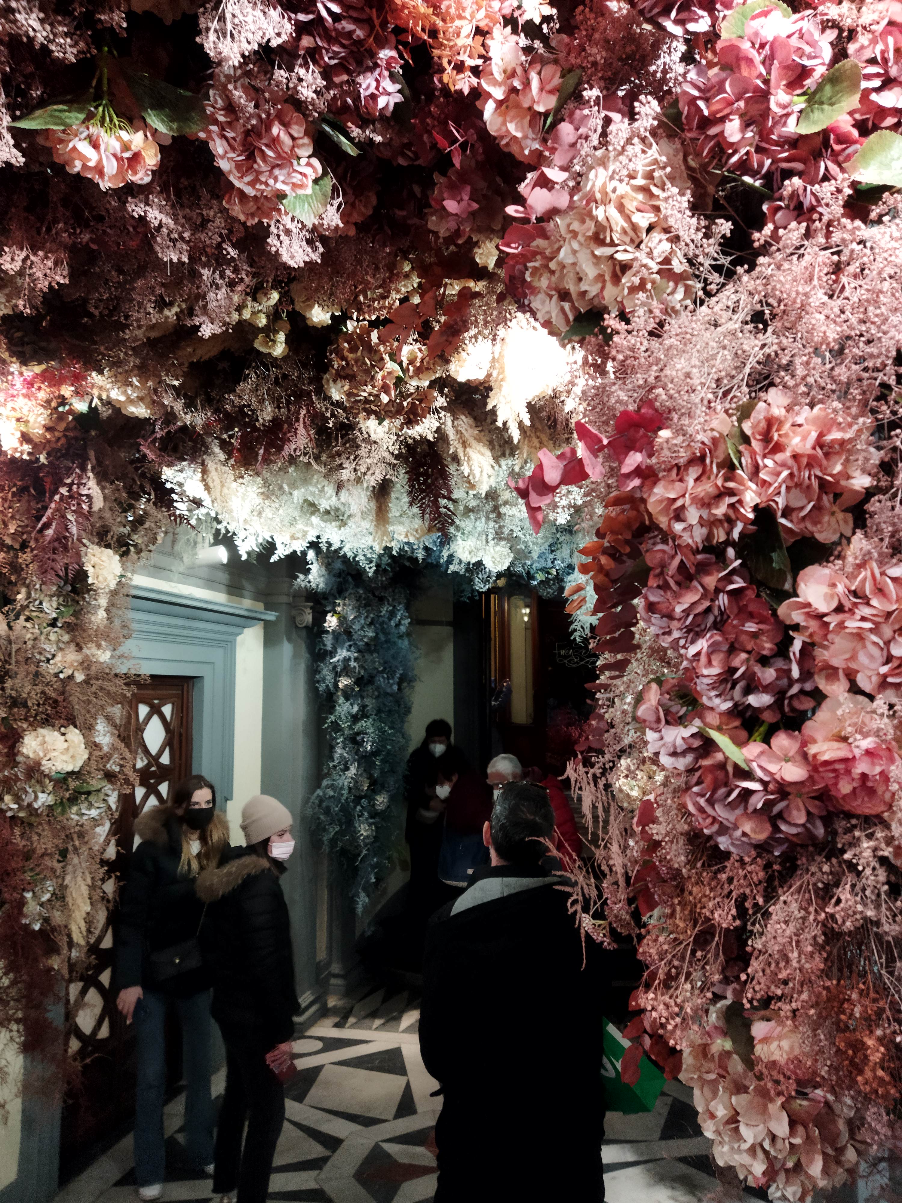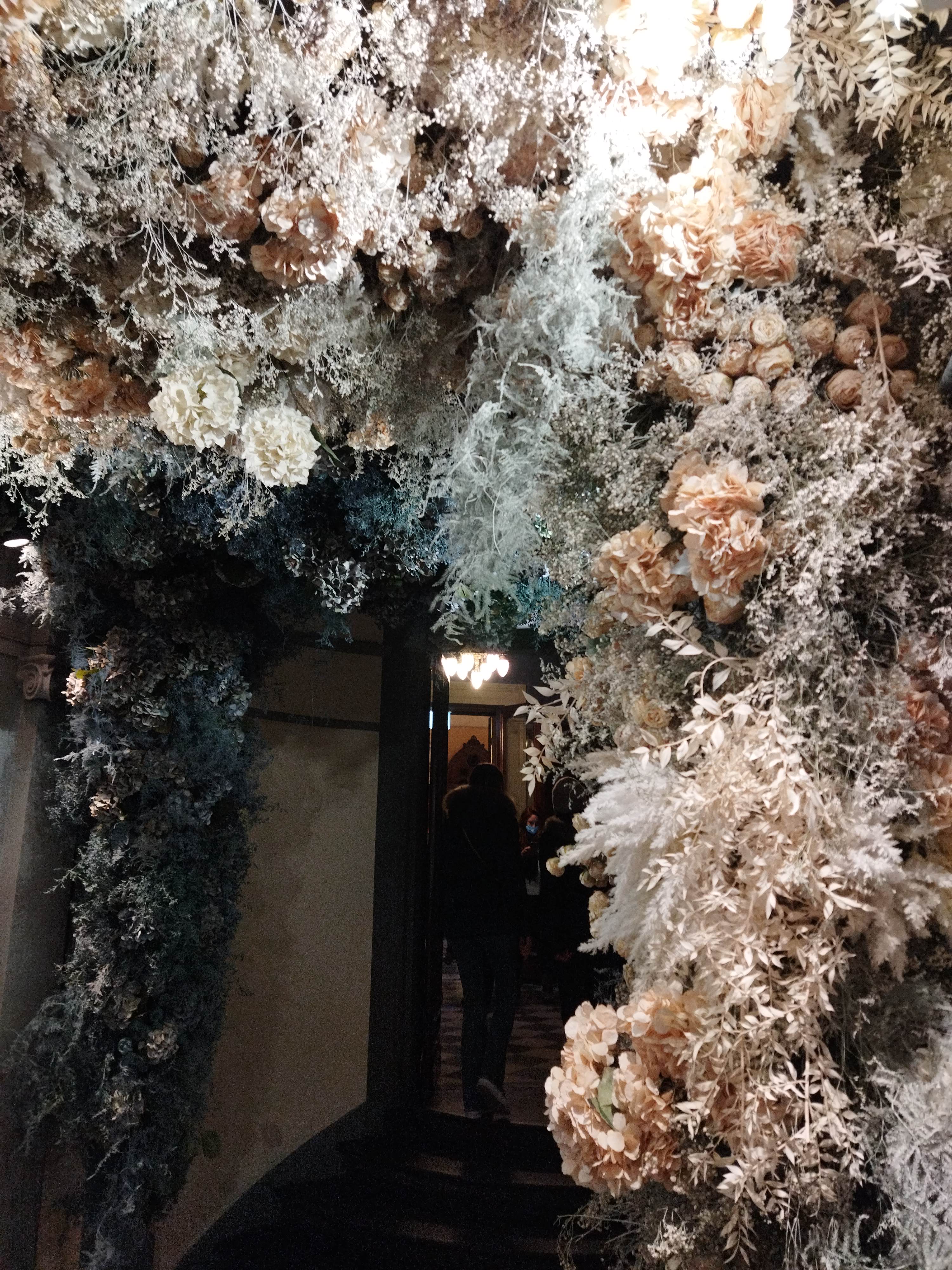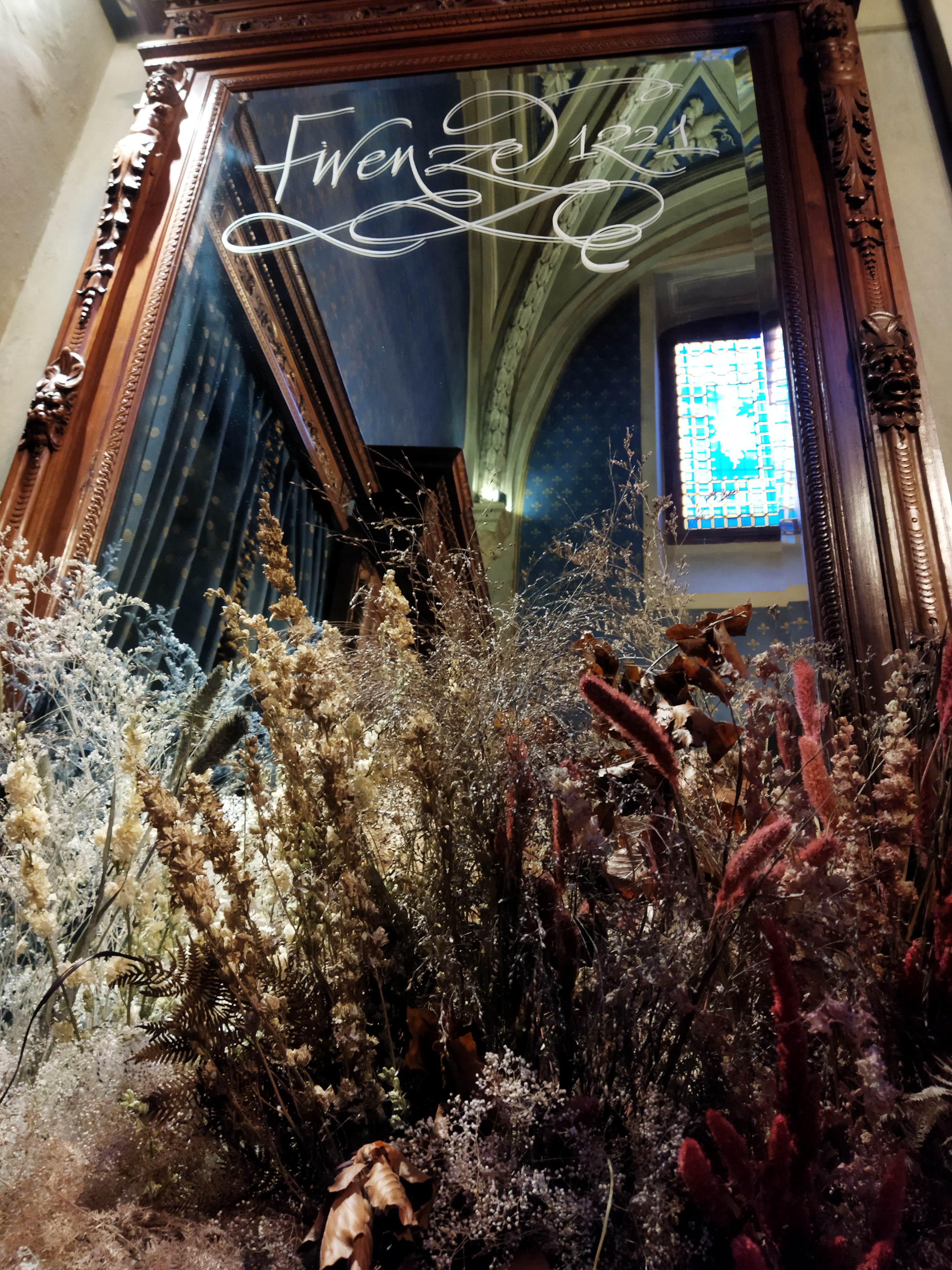 お店に入る前のホール右側には、グラデーションになったドライフラワーパネルがあり、これをバックに撮影できるようになっています。ネームが入ったパネルには、「1221」の数字が・・・そう、エントランスのこれらの装飾は、1221年のサンタ・マリア・ノヴェッラ修道院が設立された年から800年記念を祝してのことだったのでした!