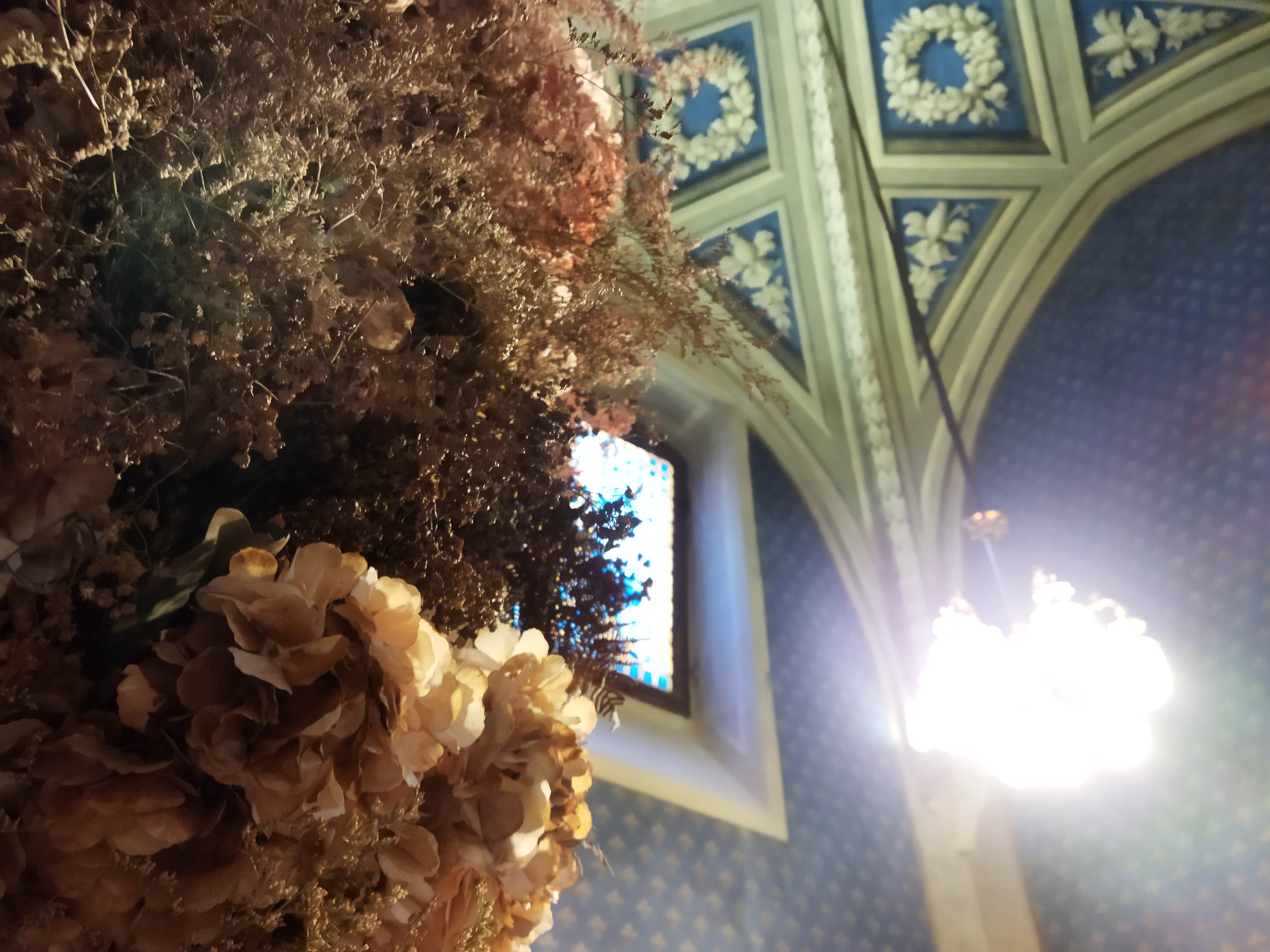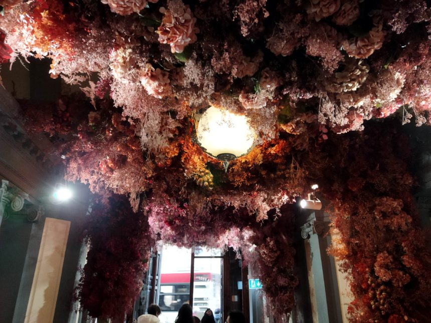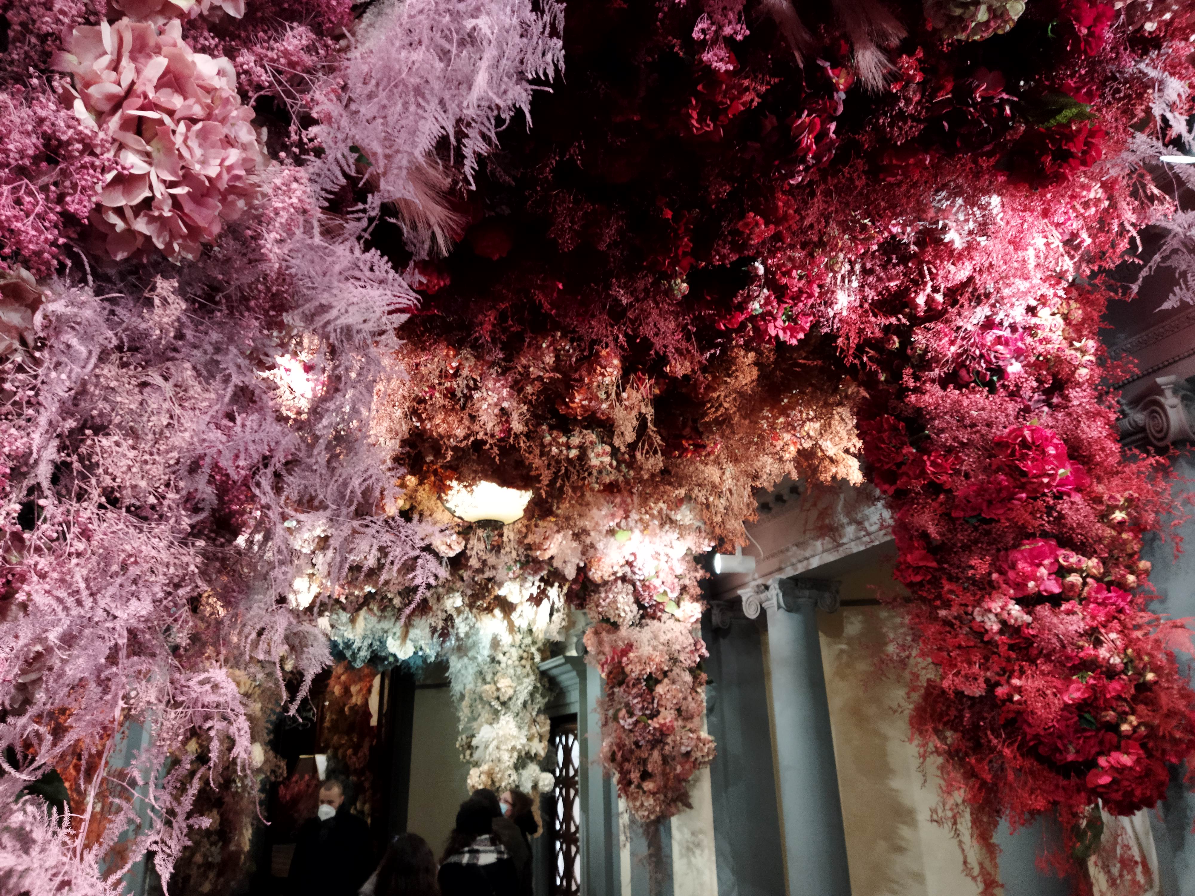 お店に入る前のホール右側には、グラデーションになったドライフラワーパネルがあり、これをバックに撮影できるようになっています。ネームが入ったパネルには、「1221」の数字が・・・そう、エントランスのこれらの装飾は、1221年のサンタ・マリア・ノヴェッラ修道院が設立された年から800年記念を祝してのことだったのでした!
